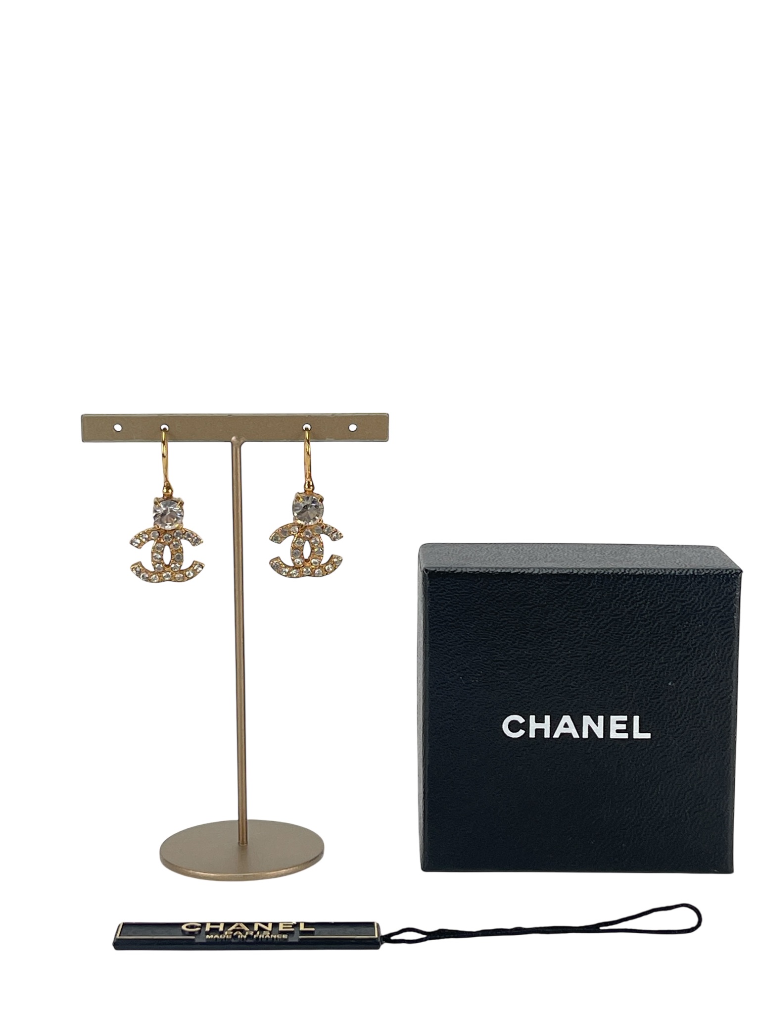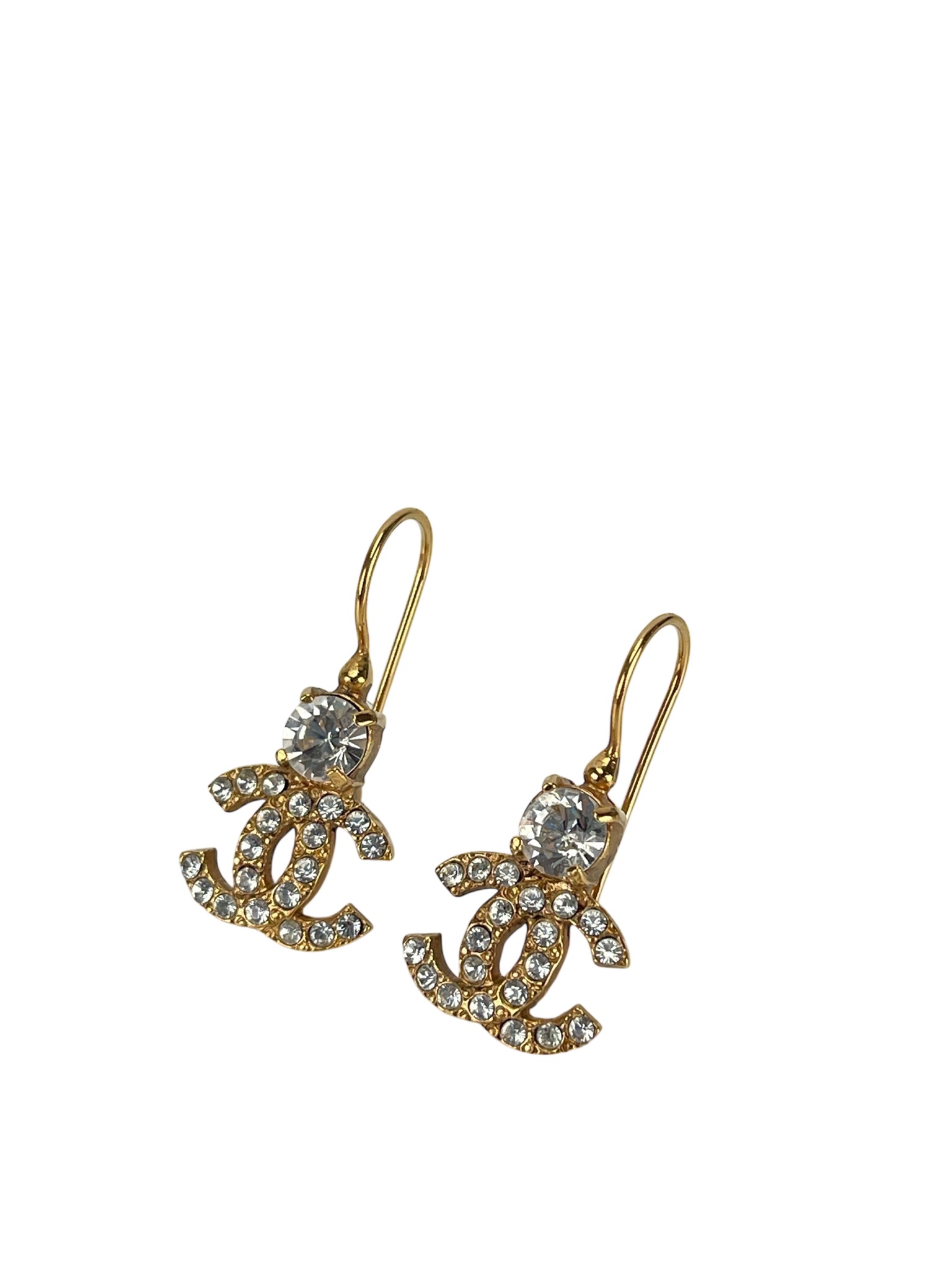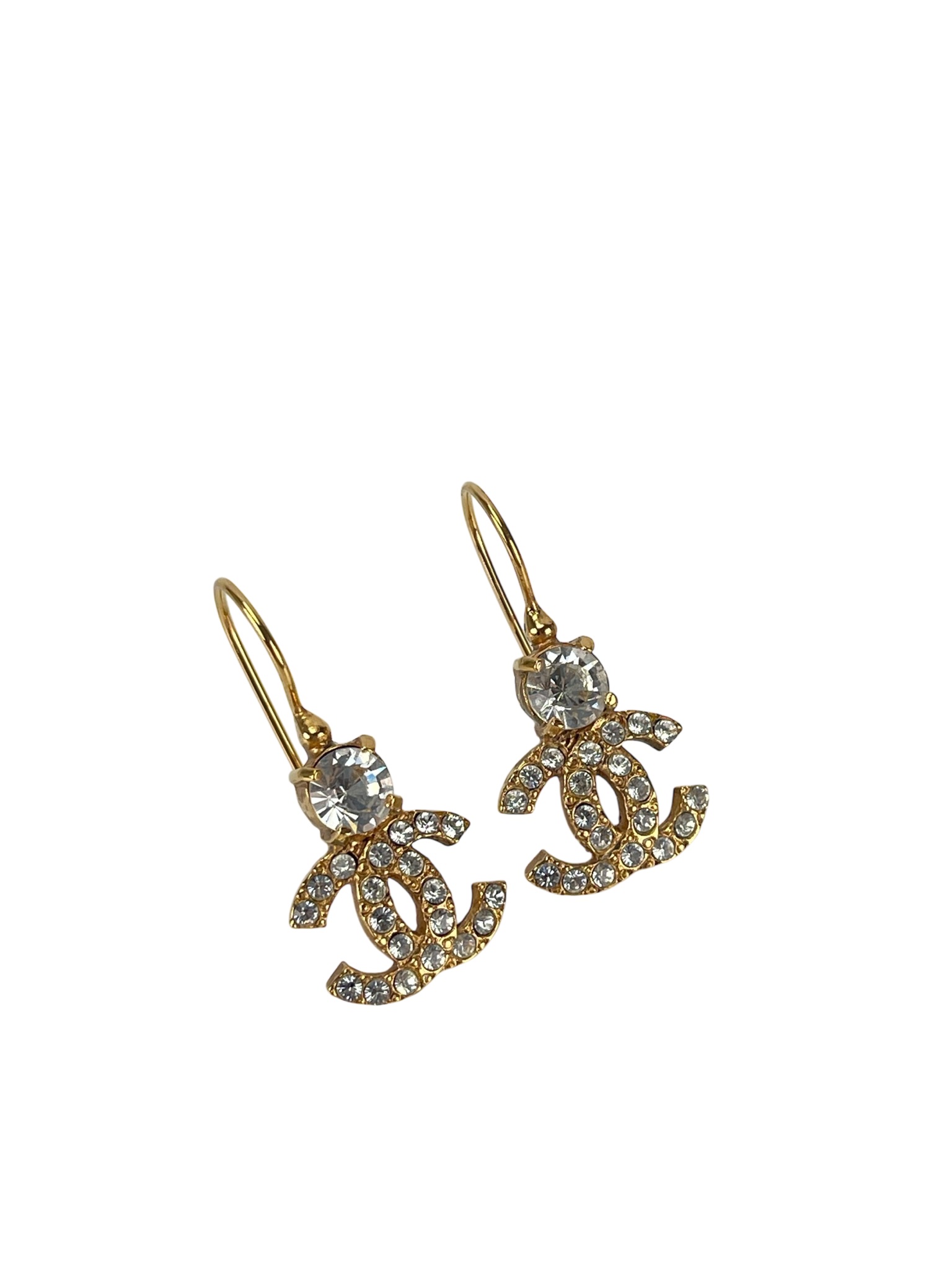 CHANEL – 02A Coco Mark Gold Rhinestone Earring