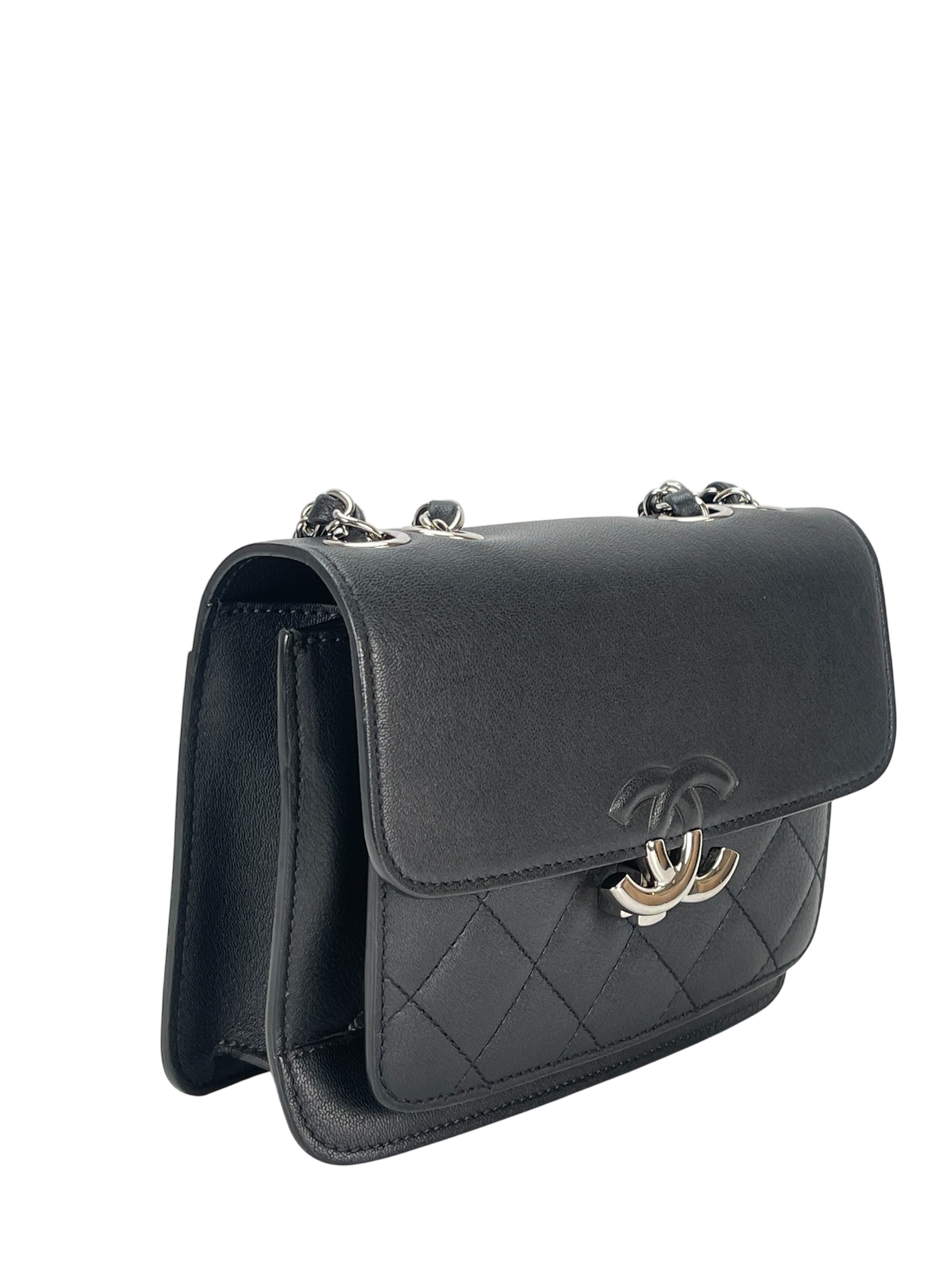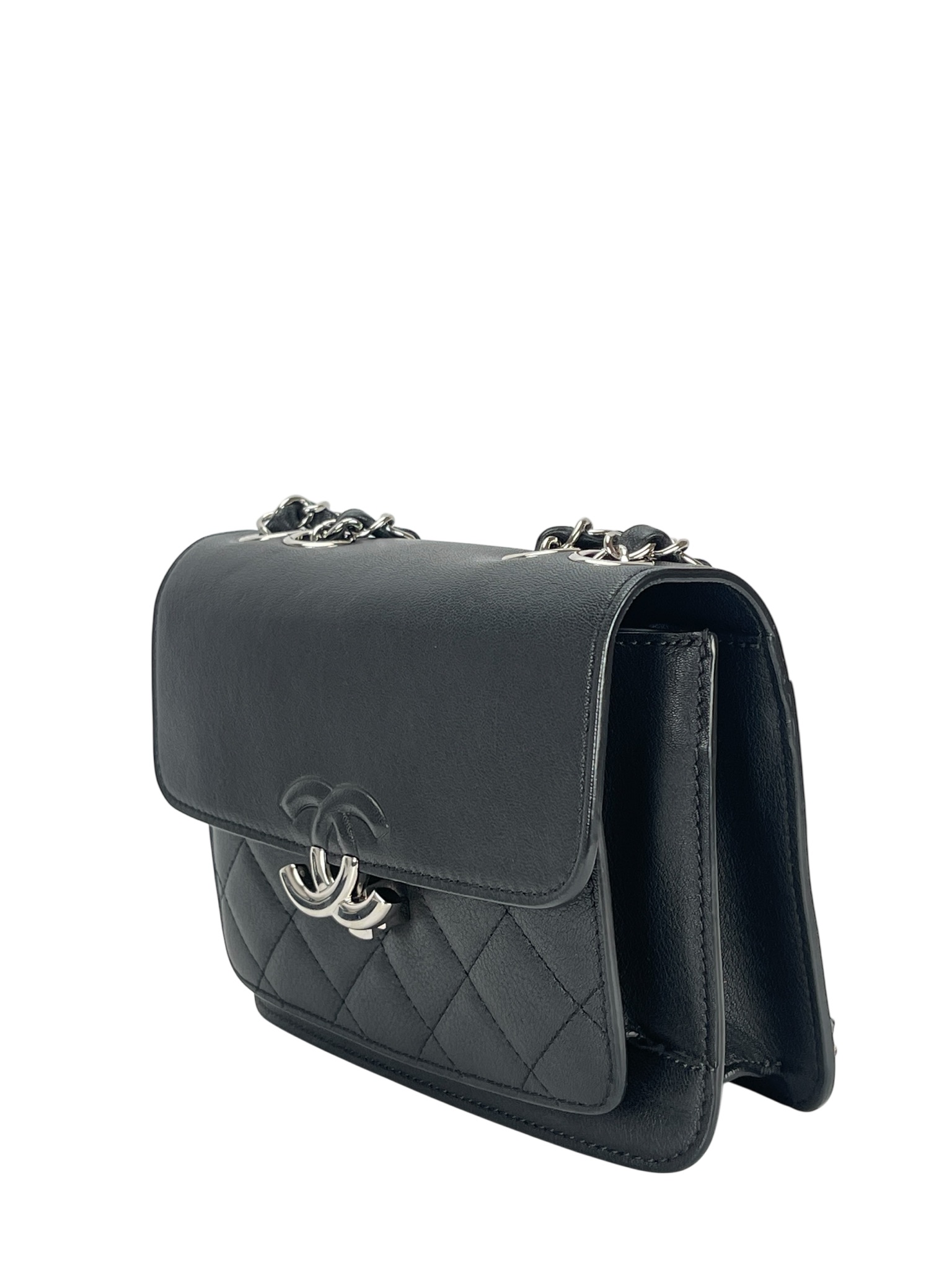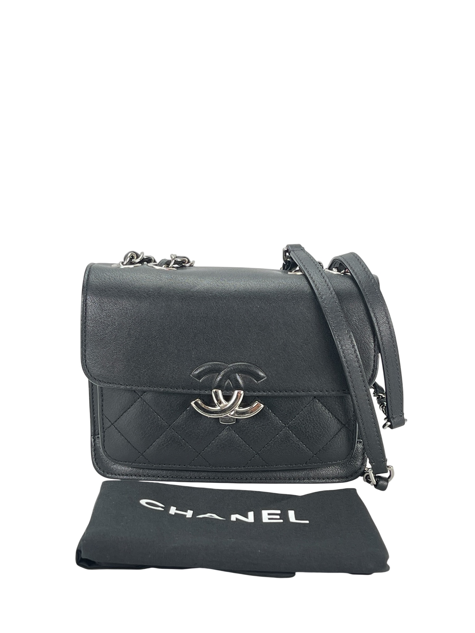 CHANEL – Black Calfskin Mini CC Box Flap Grained Bag