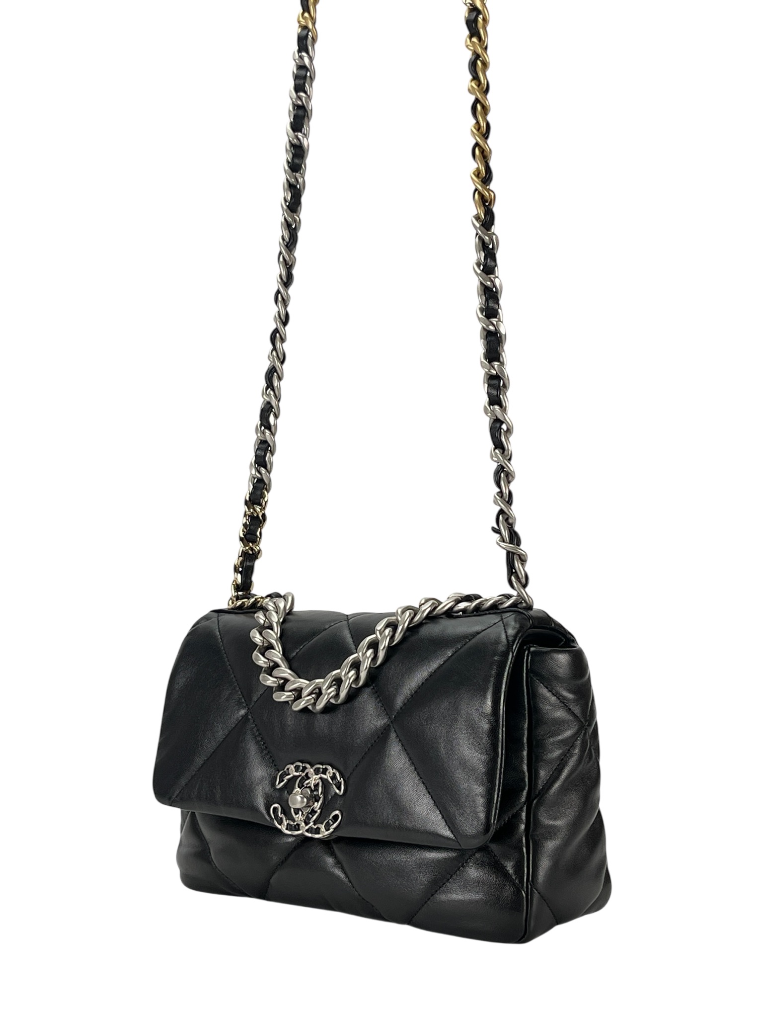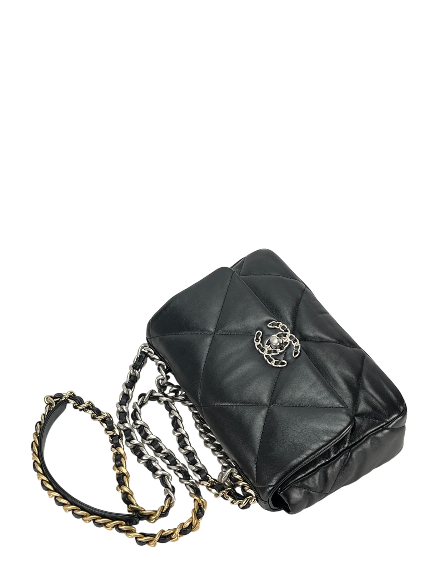 CHANEL – Black Lambskin 19 Flap Bag Small