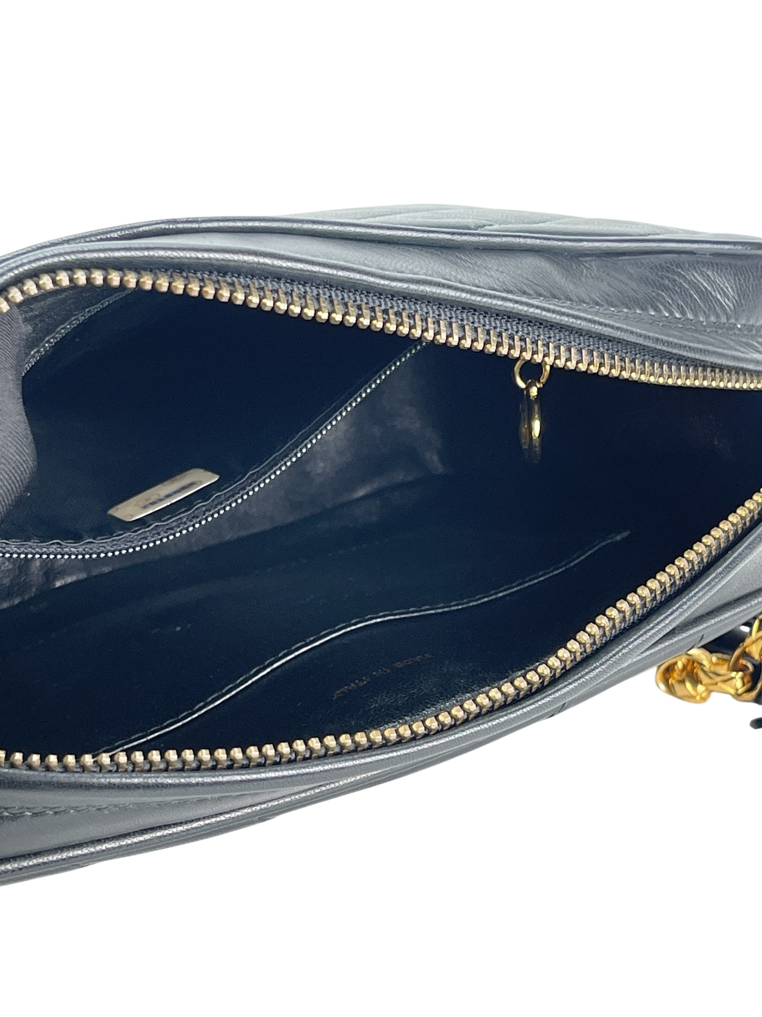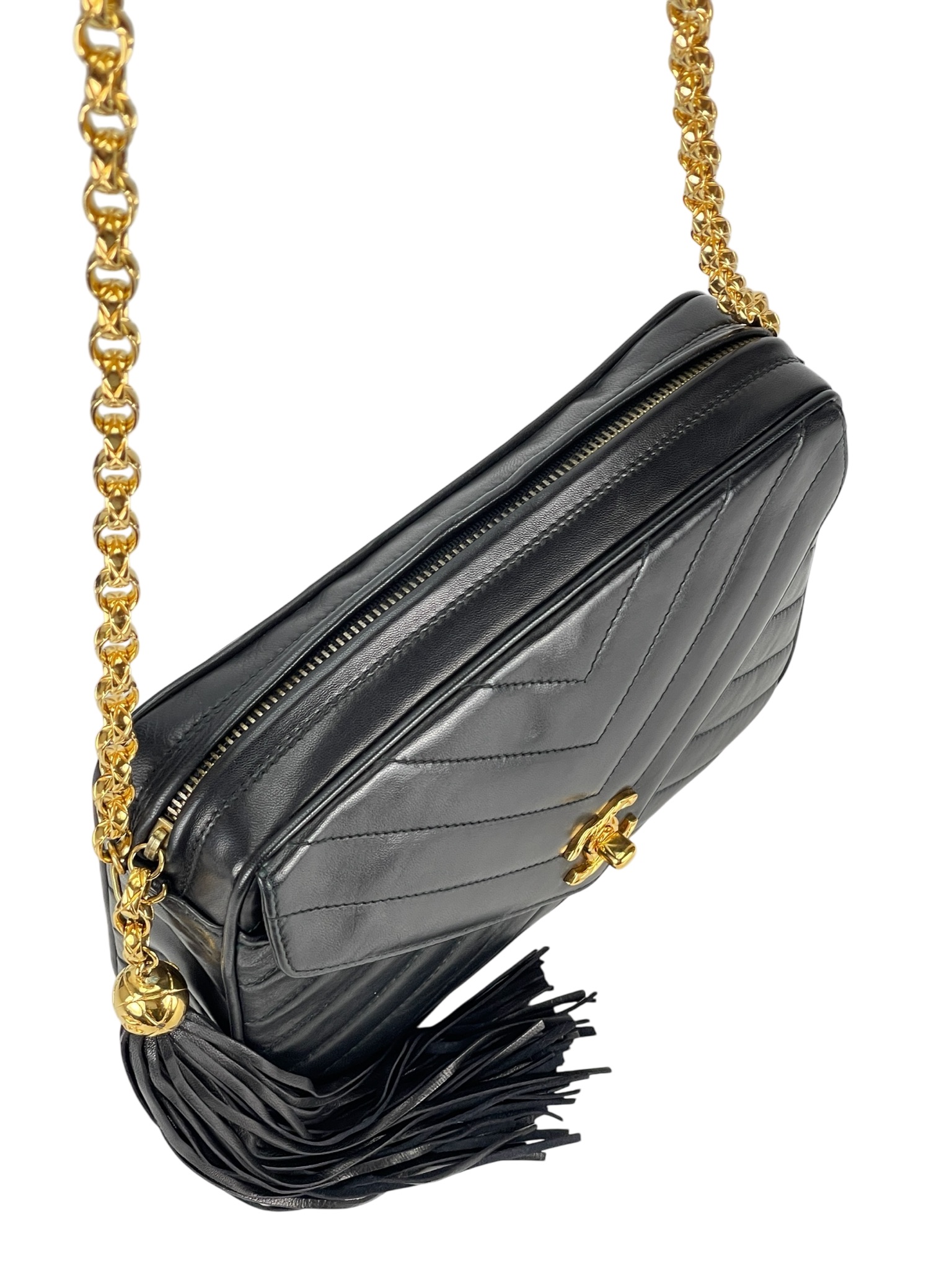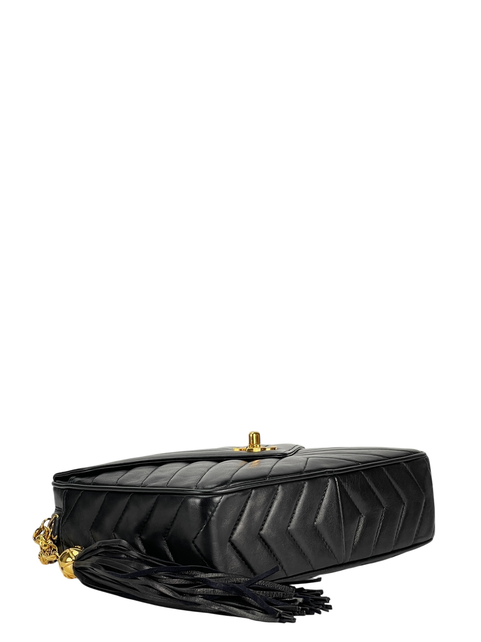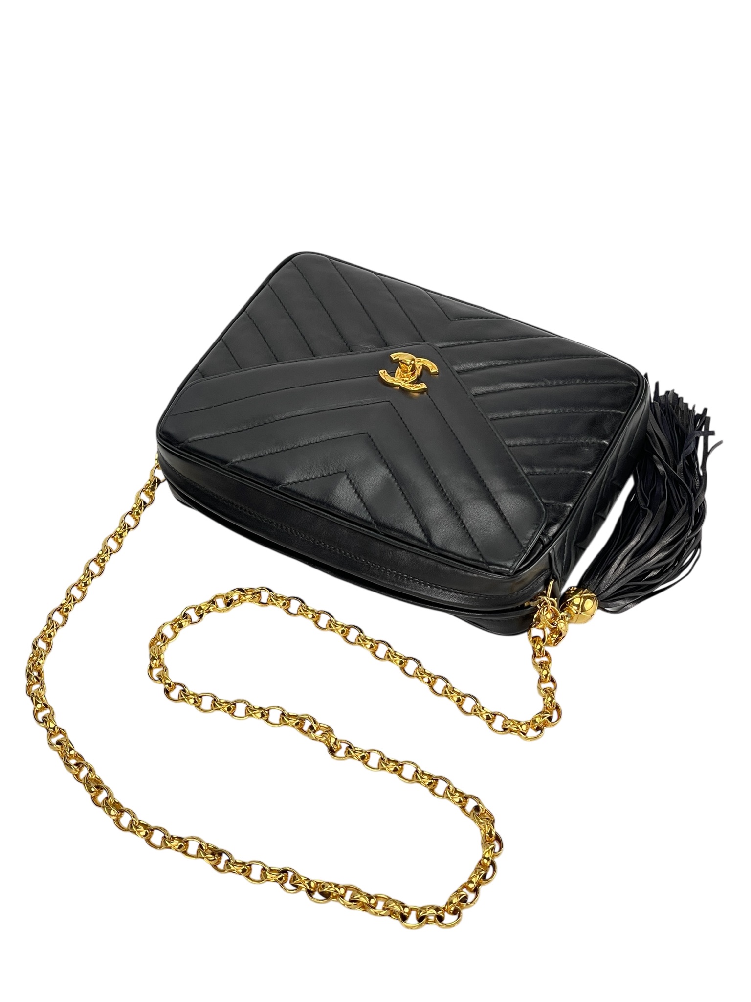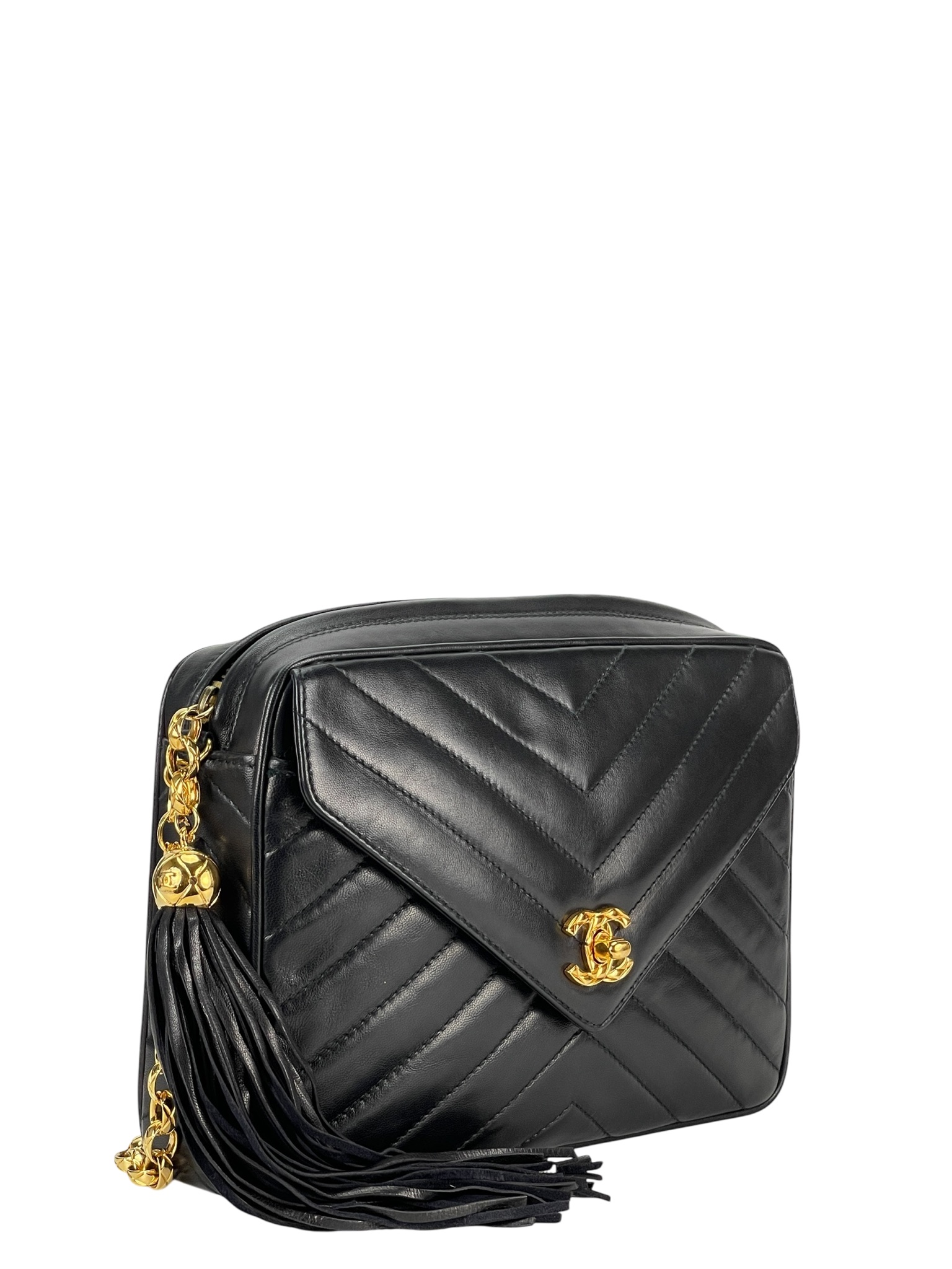 CHANEL – Black Lambskin Chevron Camera Crossbody Bag