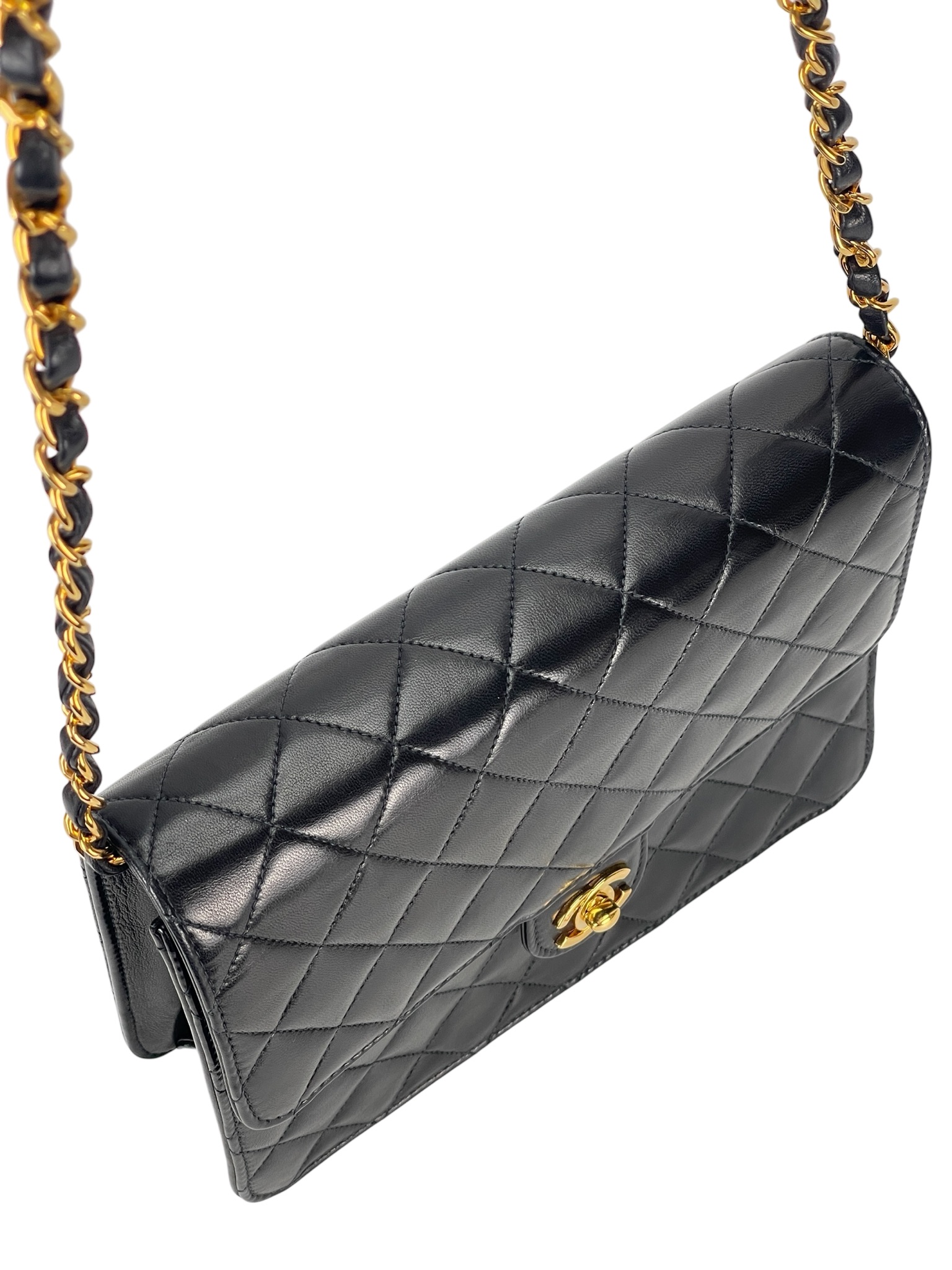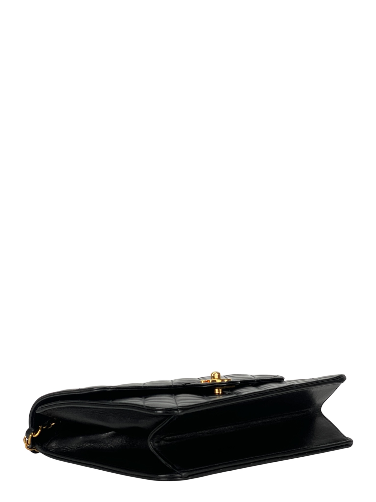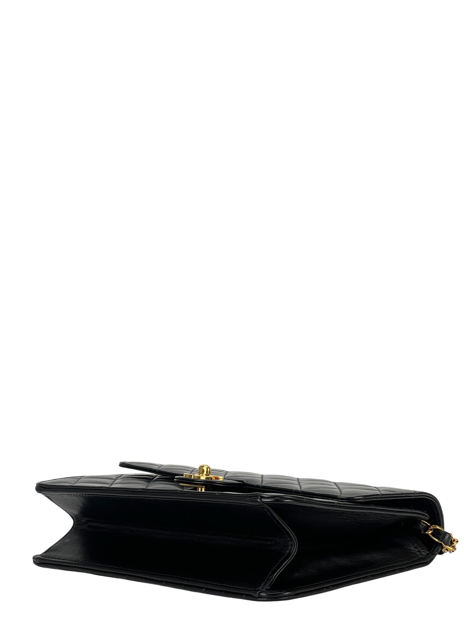 CHANEL – Small Matelasse Black Lambskin Single Chain Handbag Gold Hardware