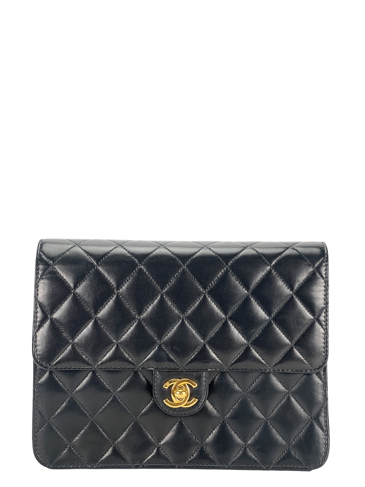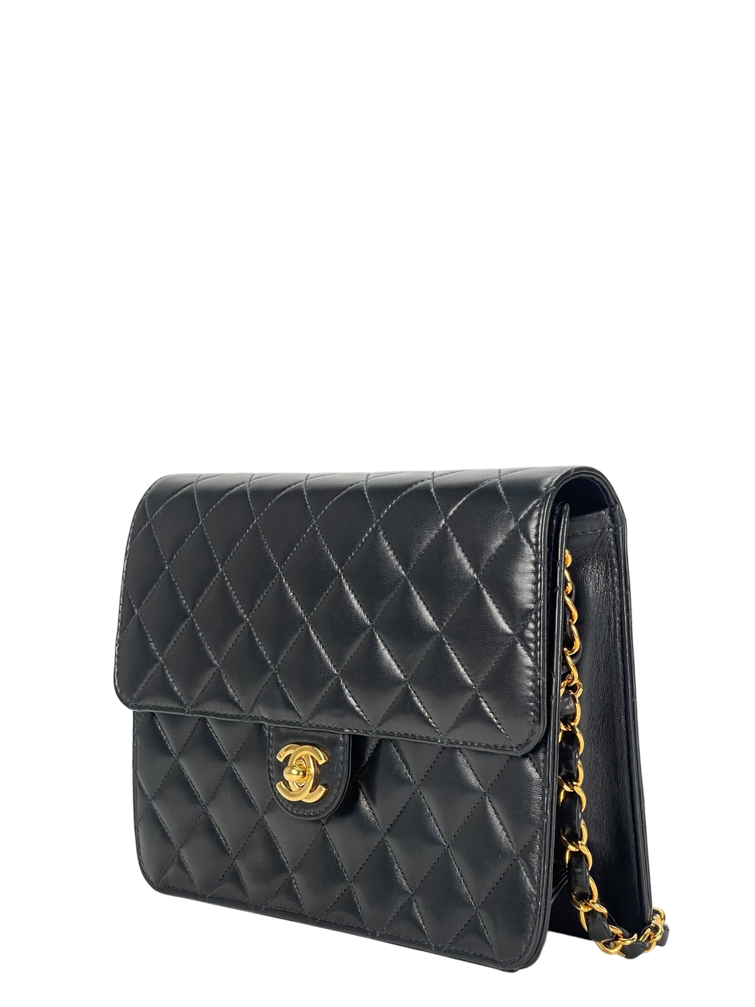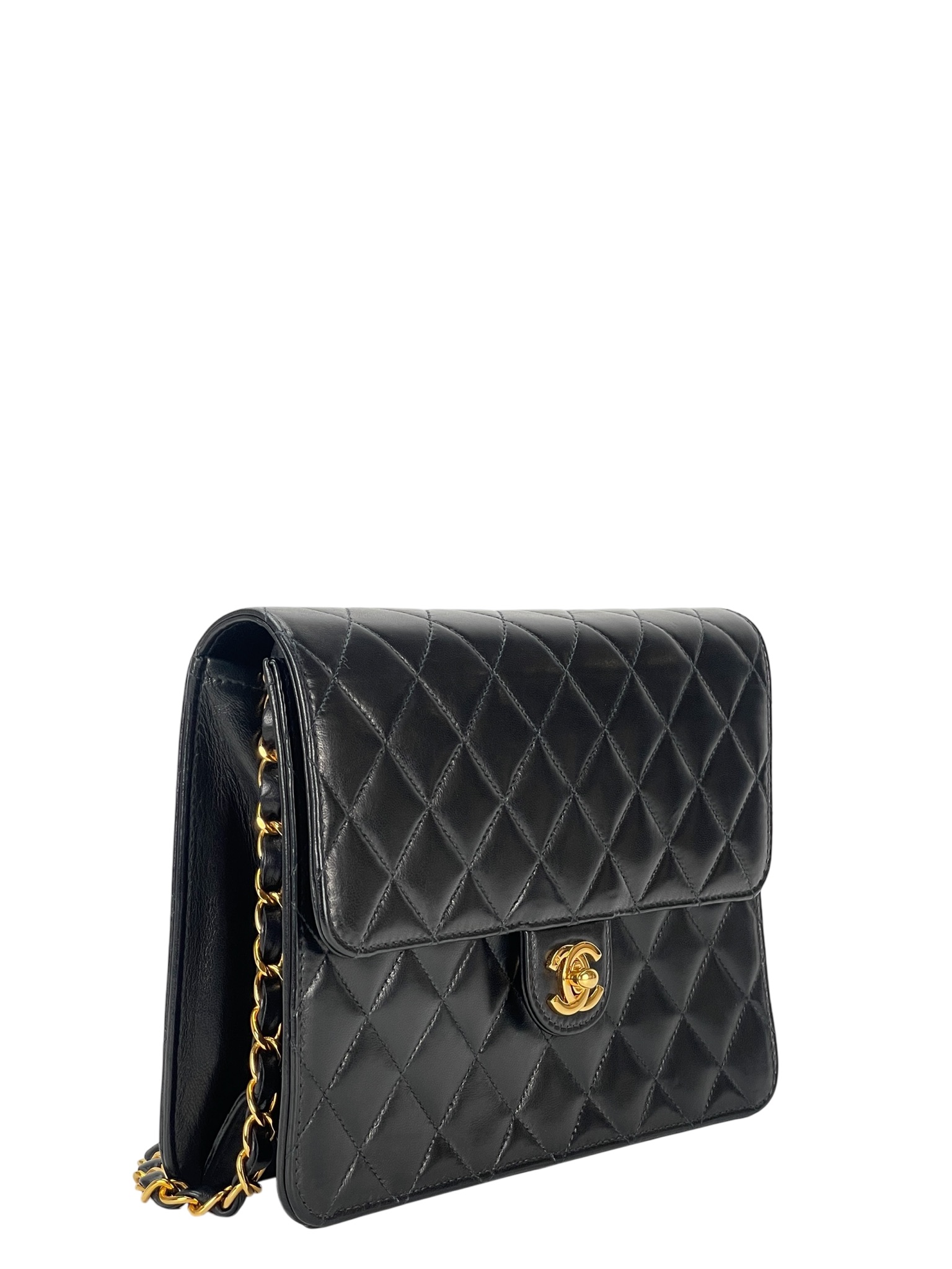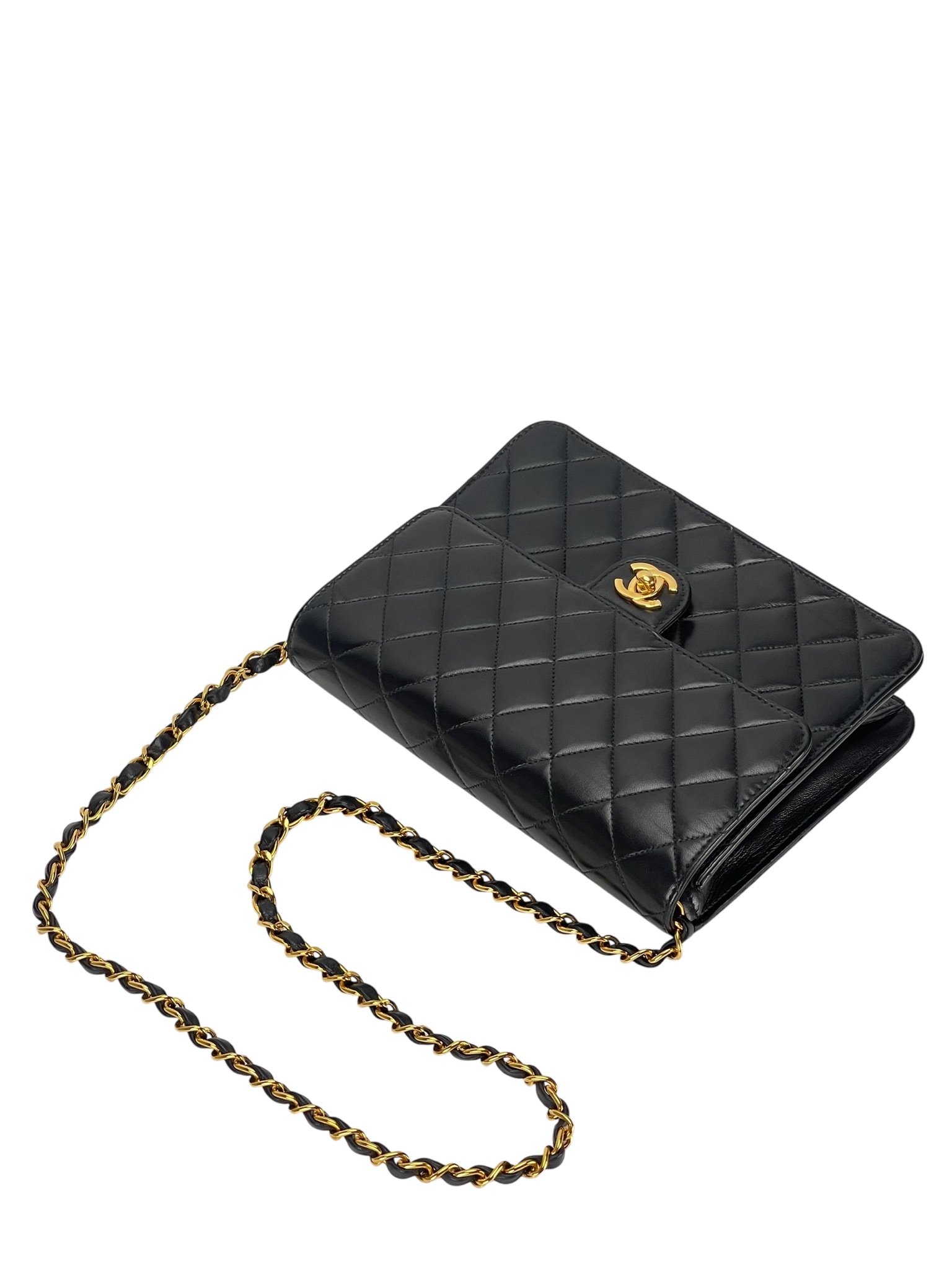 CHANEL – Small Matelasse Black Lambskin Single Chain Handbag Gold Hardware