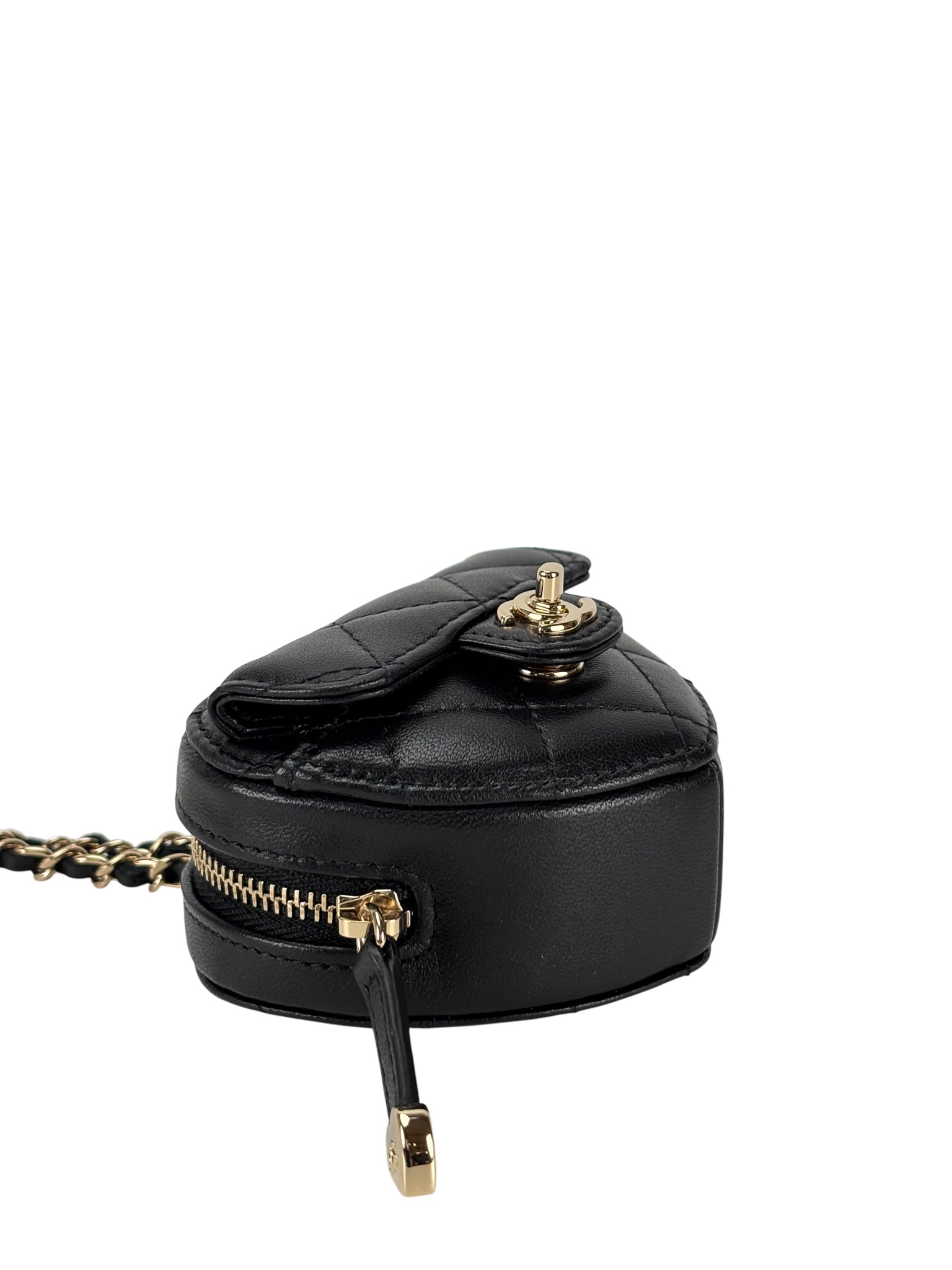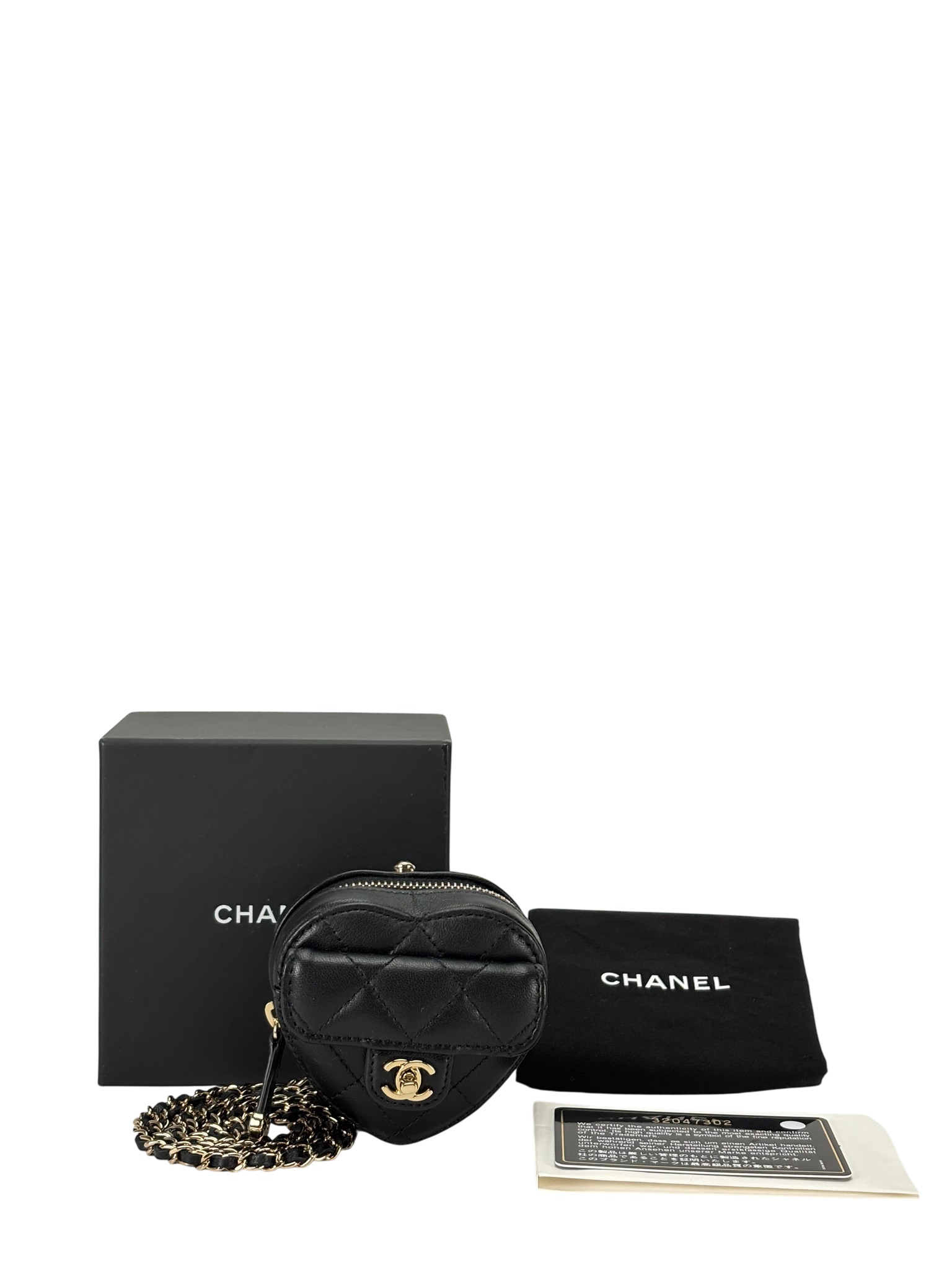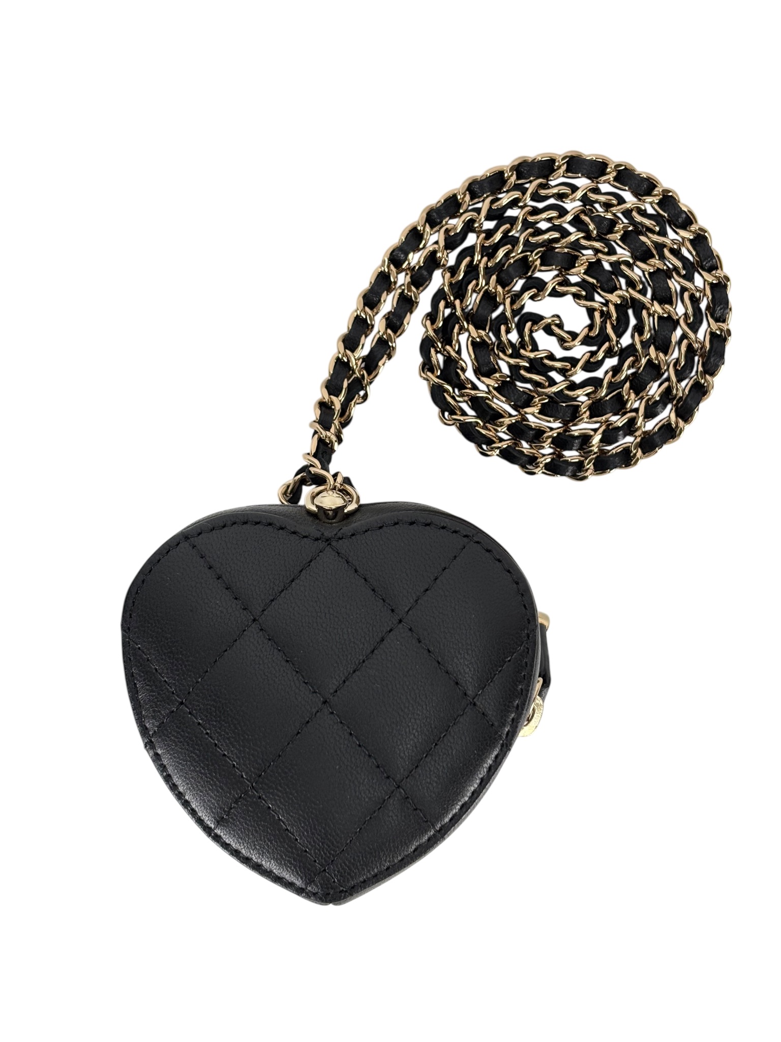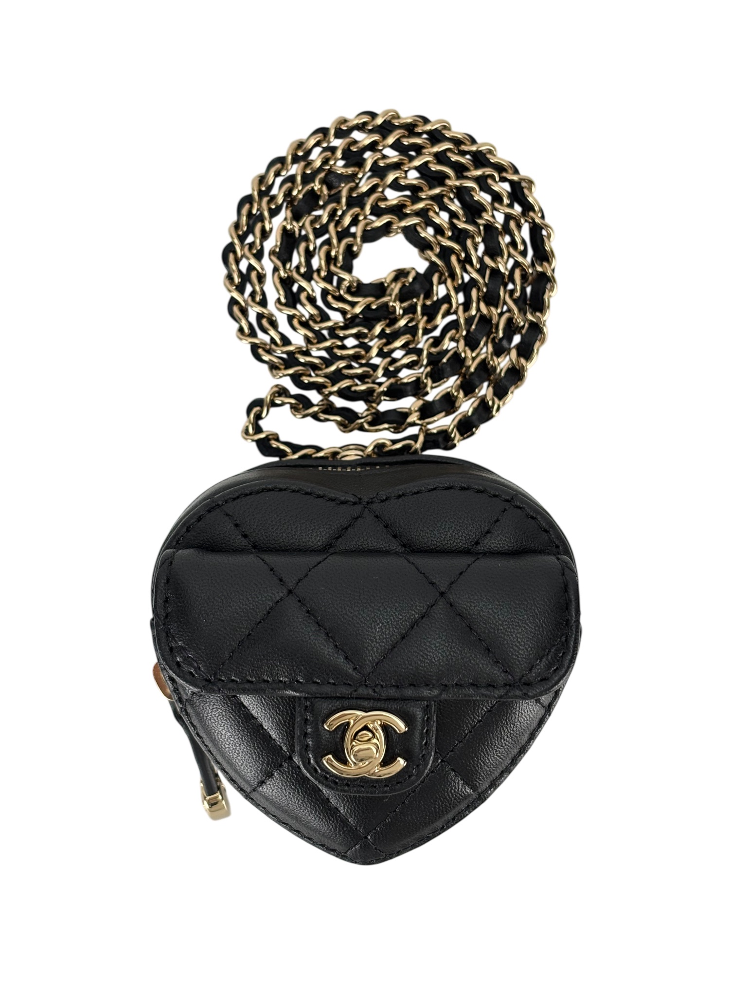 CHANEL – Black Lambskin Mini Heart Chain Wallet Bag