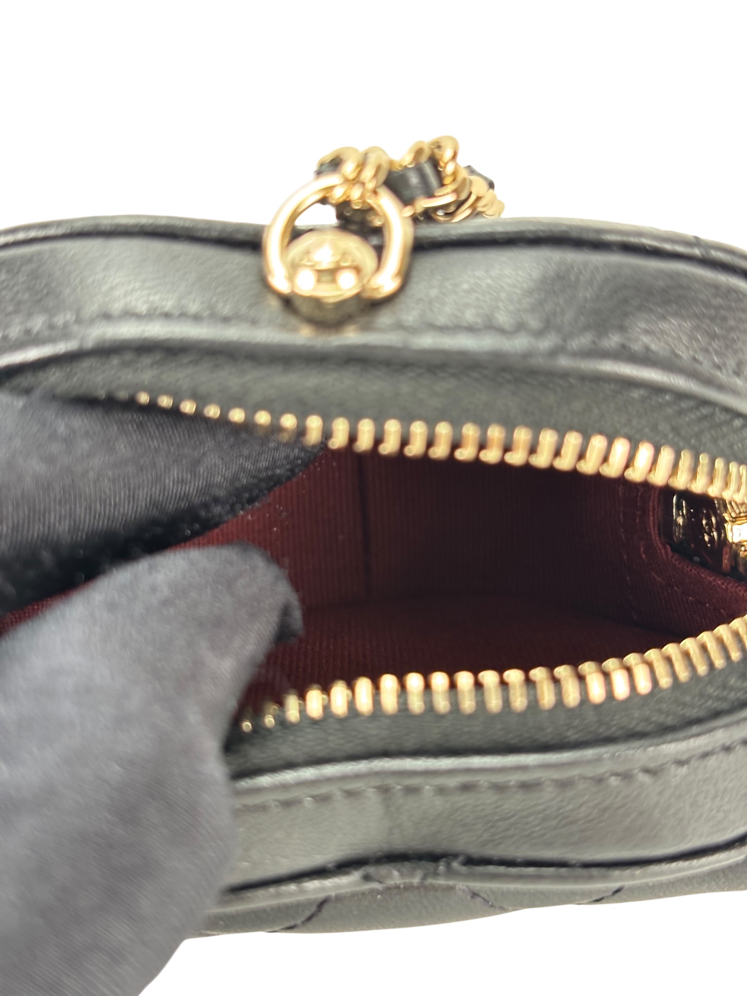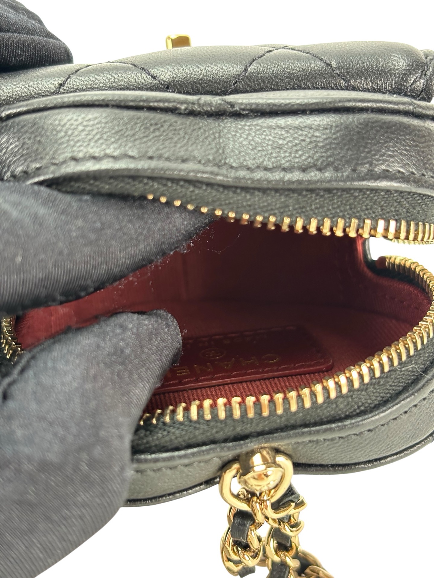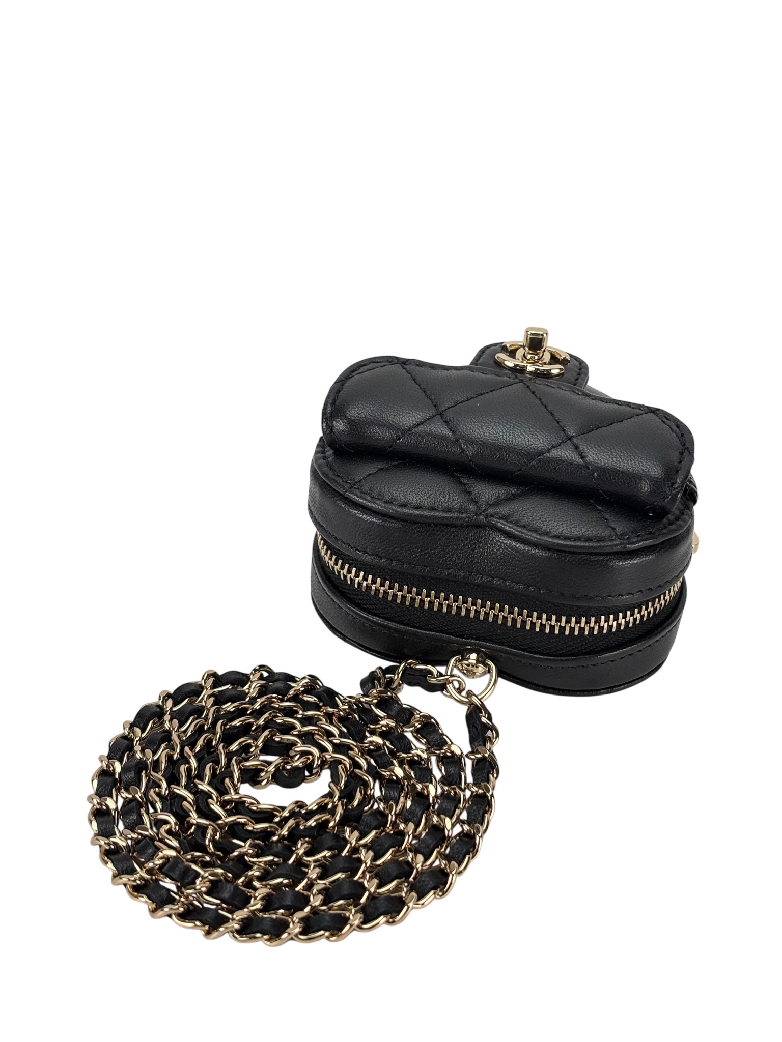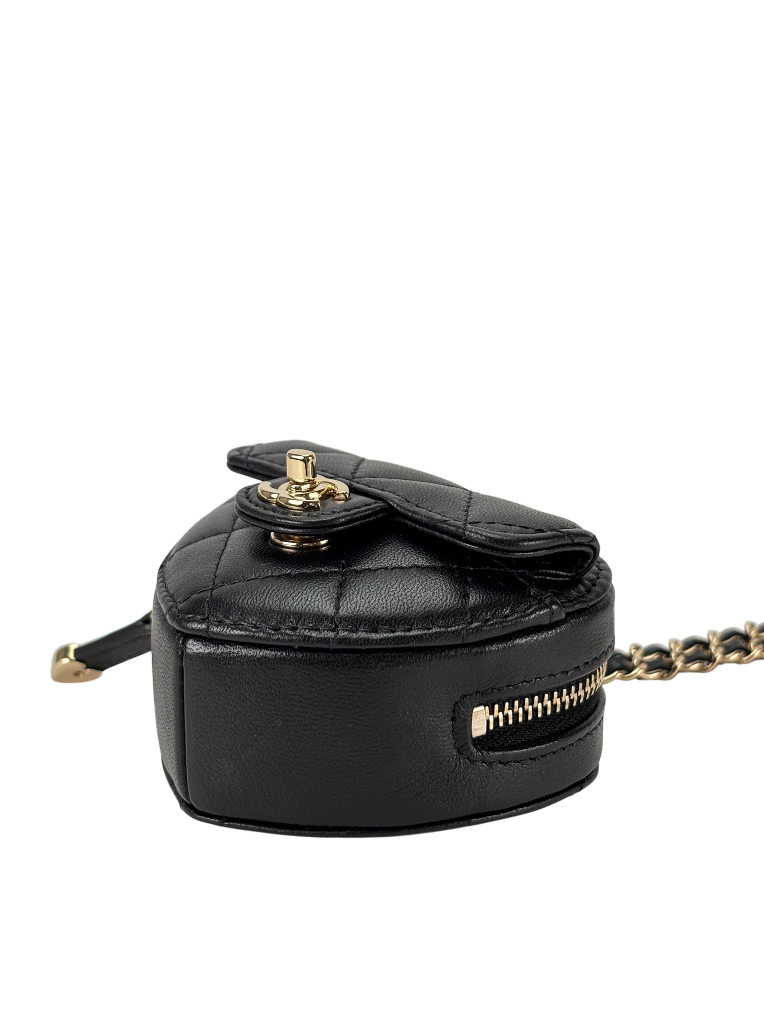 CHANEL – Black Lambskin Mini Heart Chain Wallet Bag