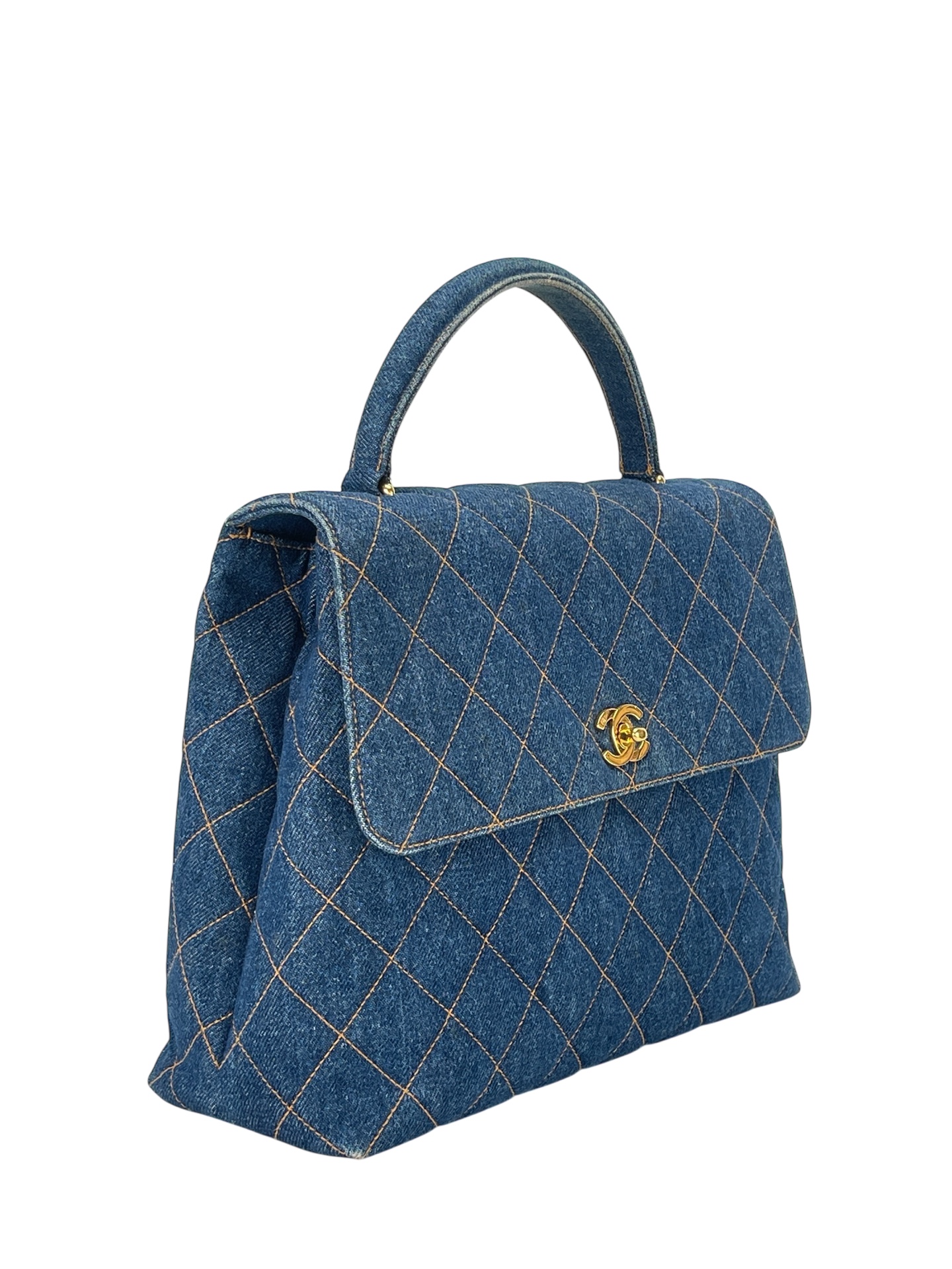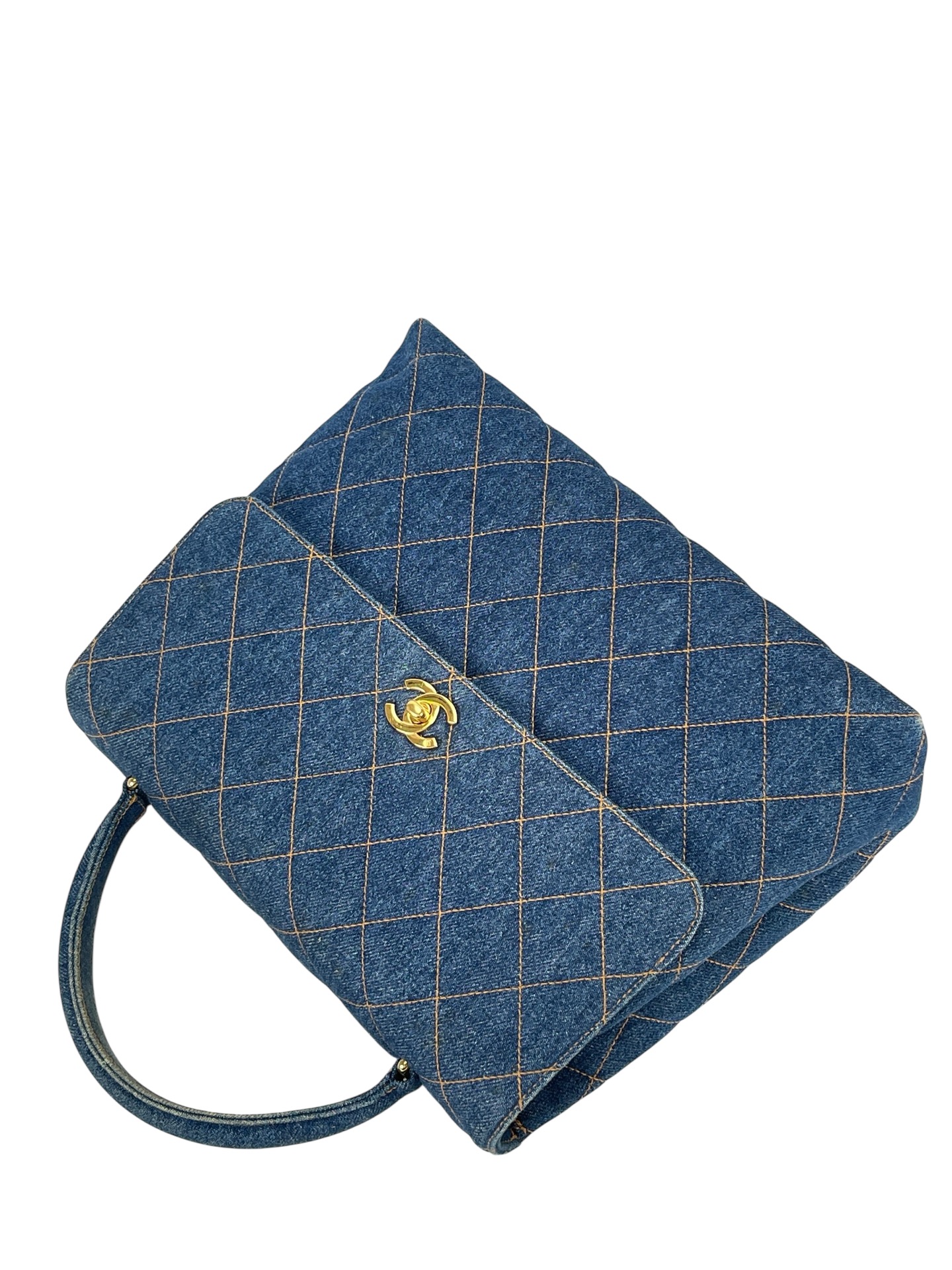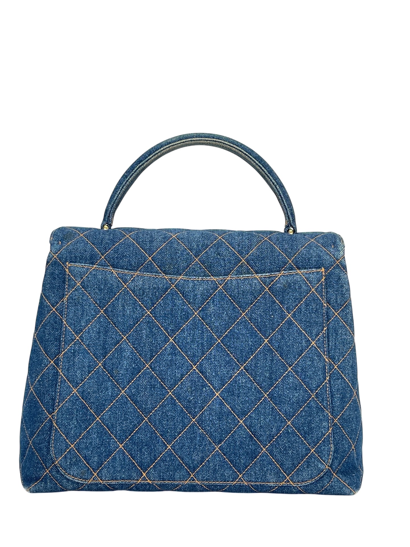 CHANEL – Blue Denim Kelly Coco Mark Matelasse Handle Handbag