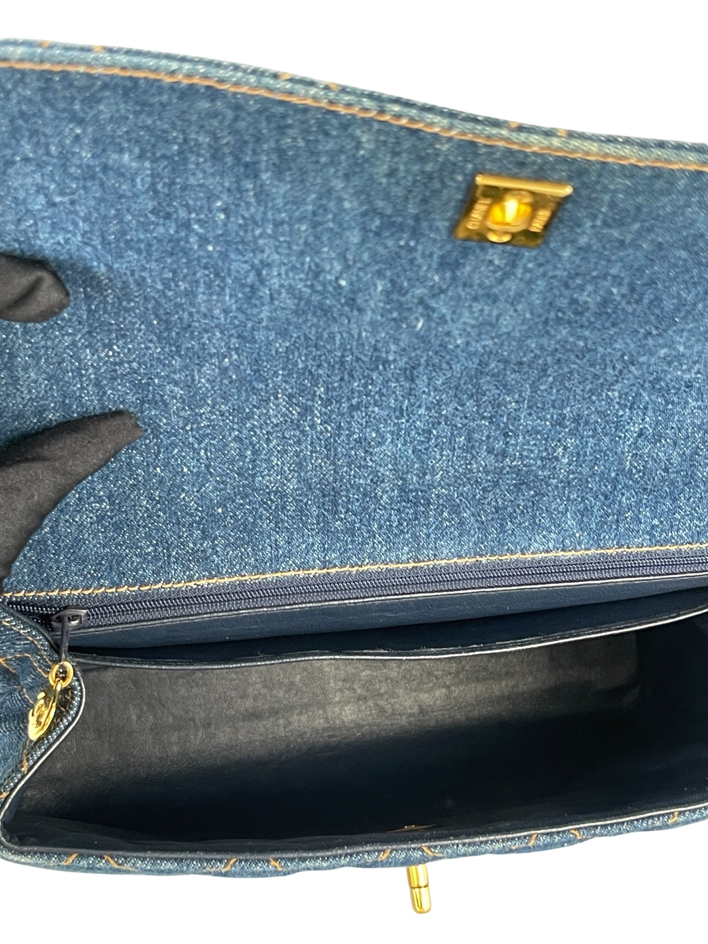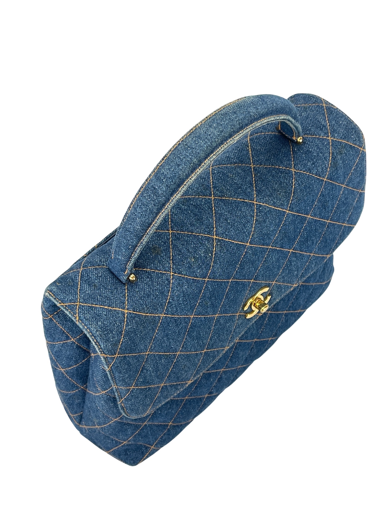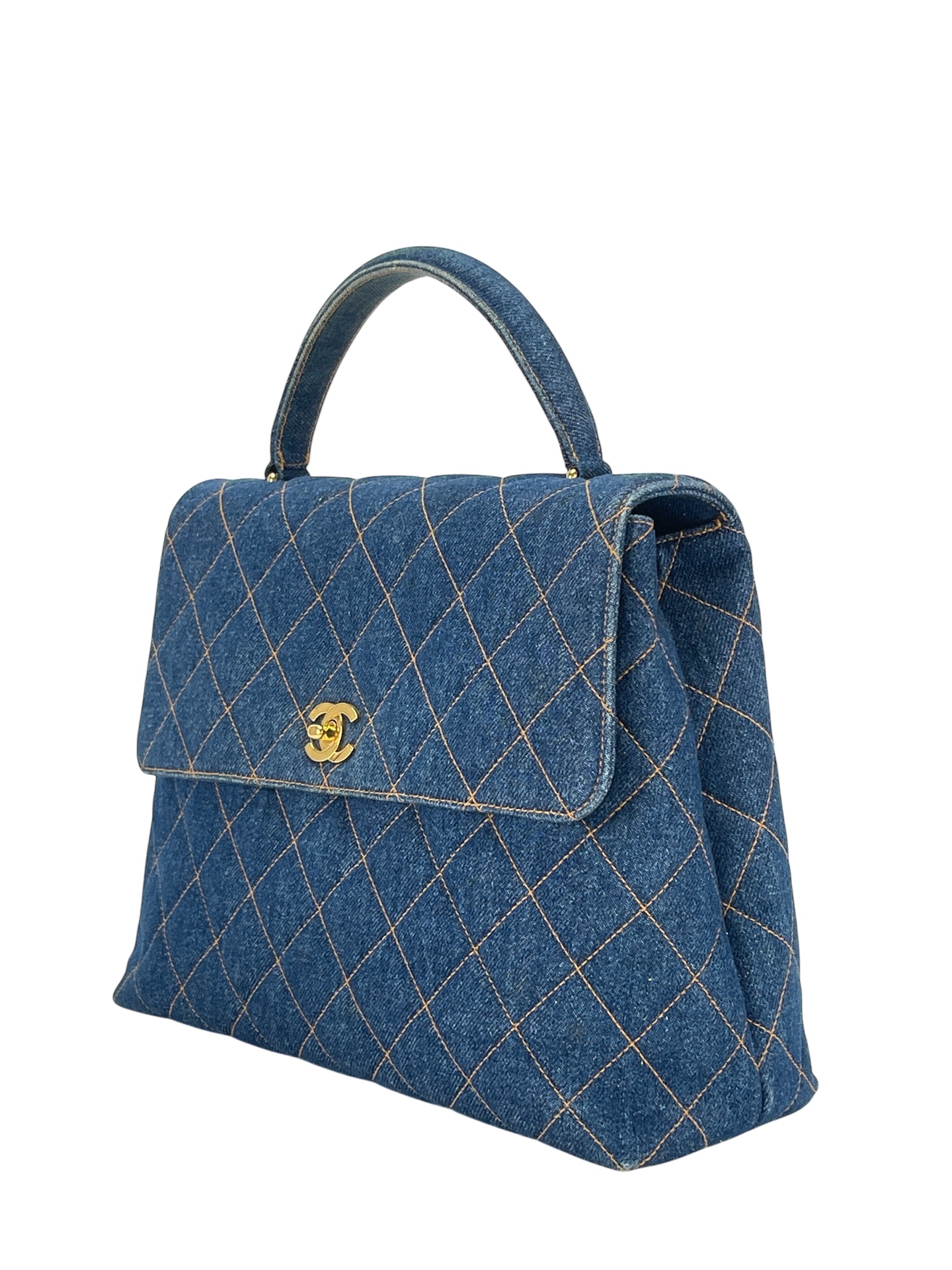 CHANEL – Blue Denim Kelly Coco Mark Matelasse Handle Handbag