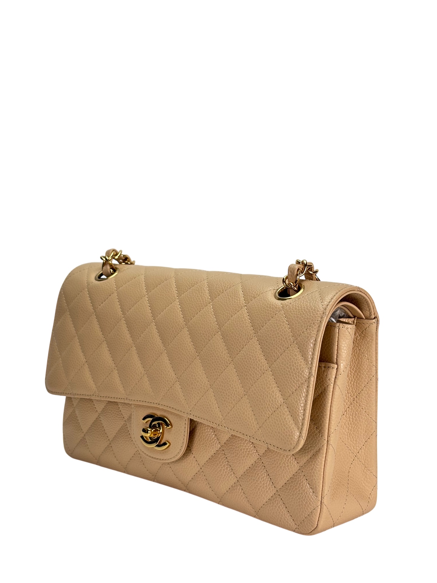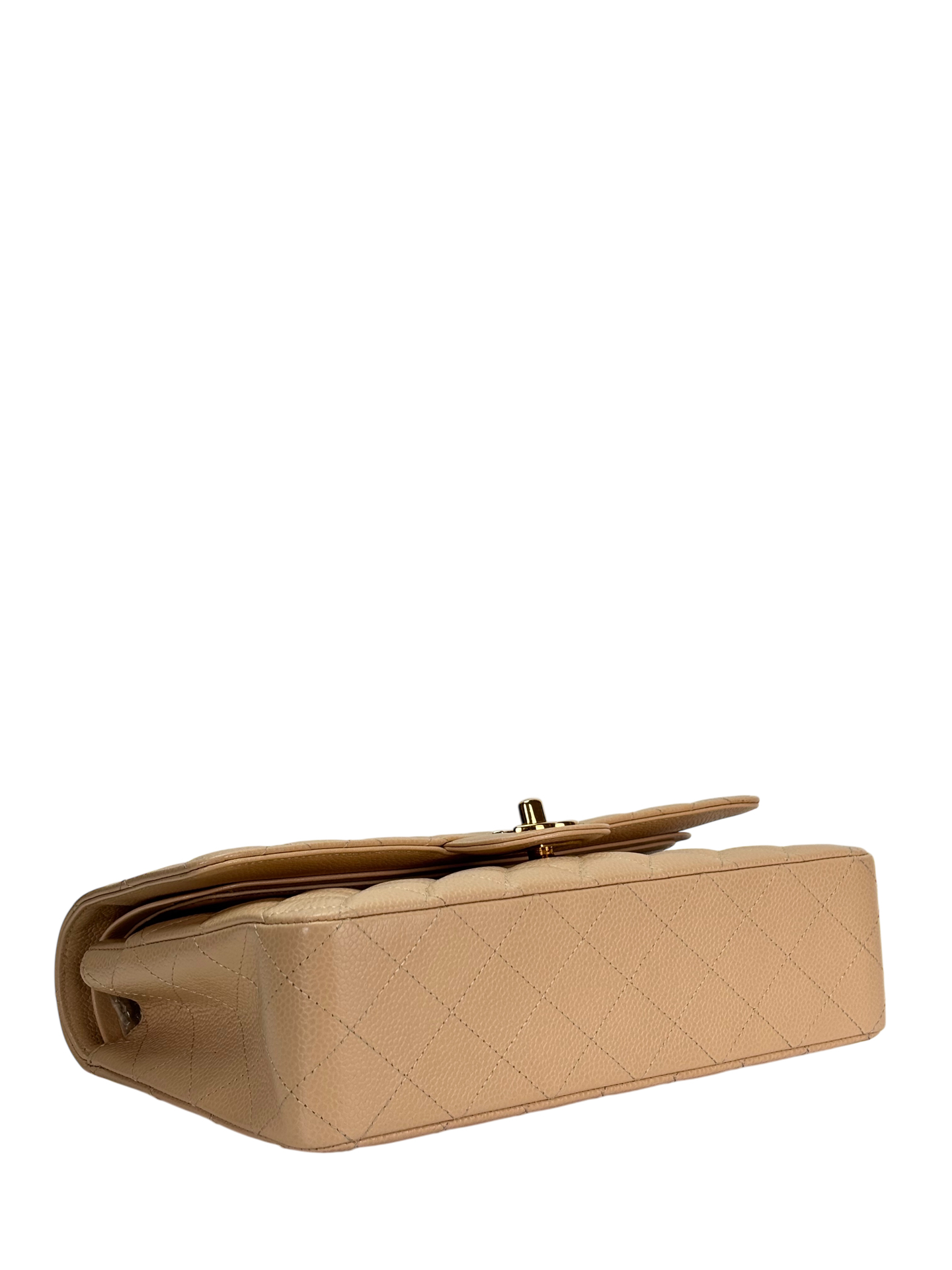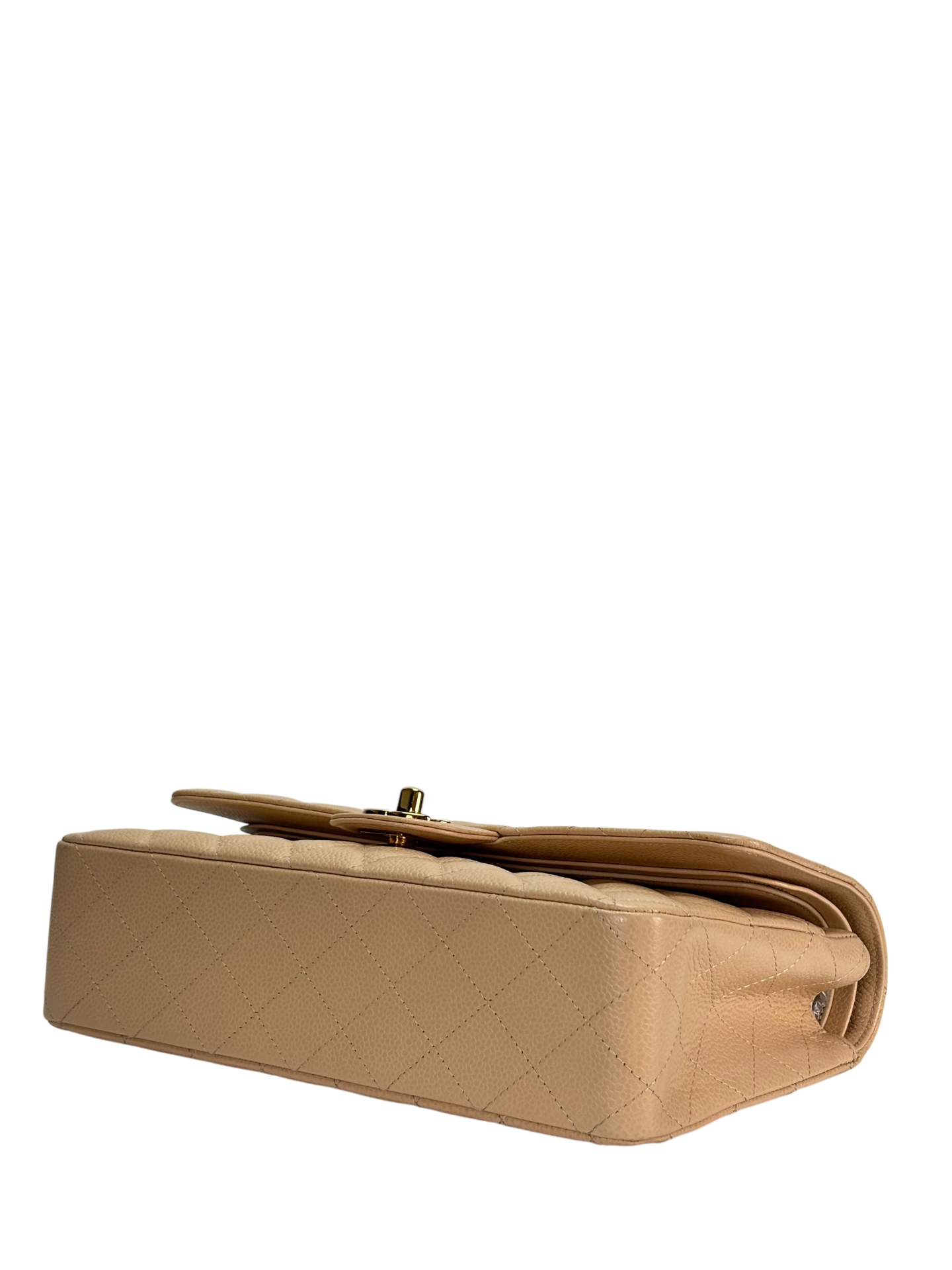 CHANEL – Medium Classic Double Flap Bag Beige Caviar Gold Hardware (CF25)