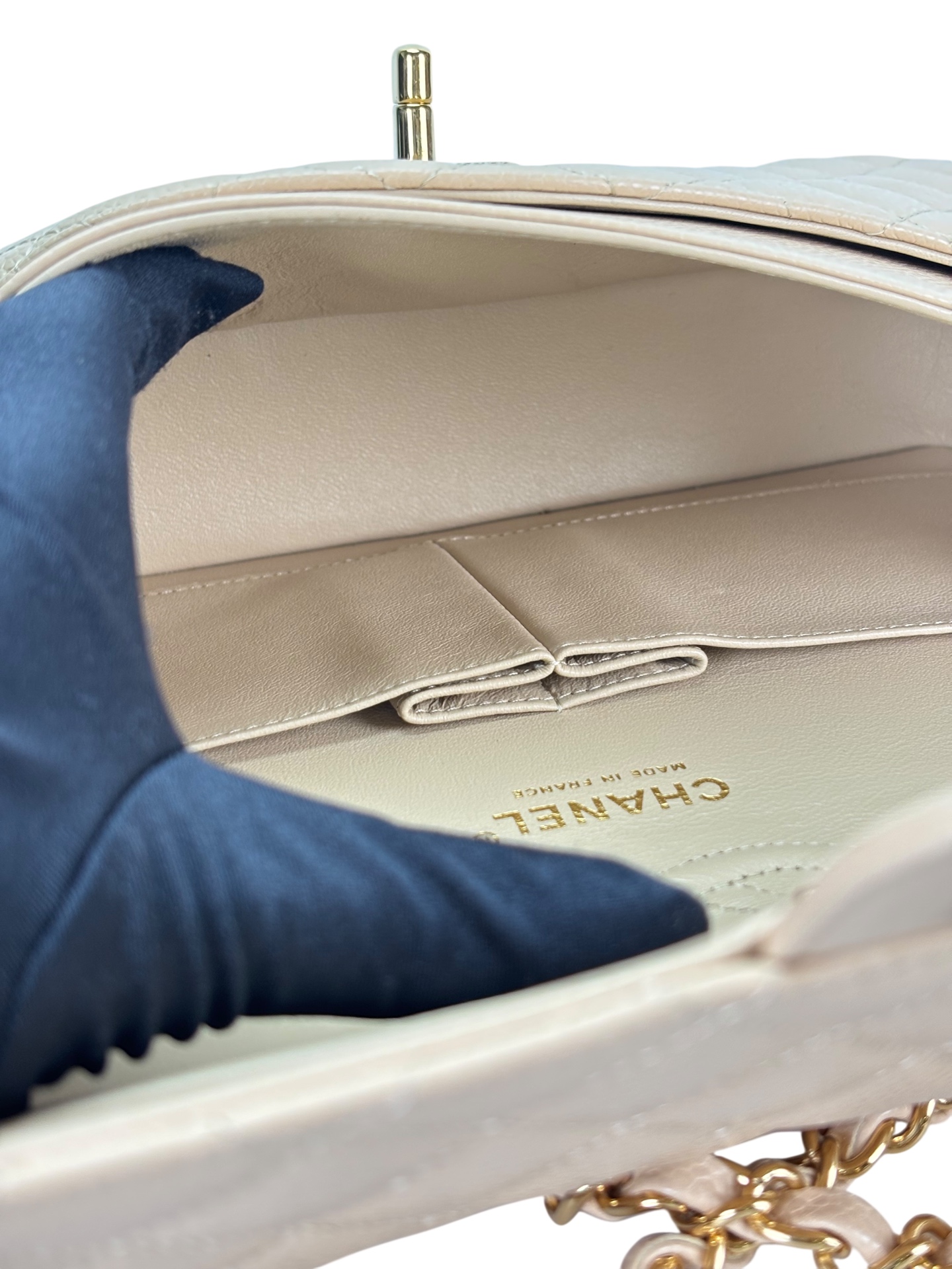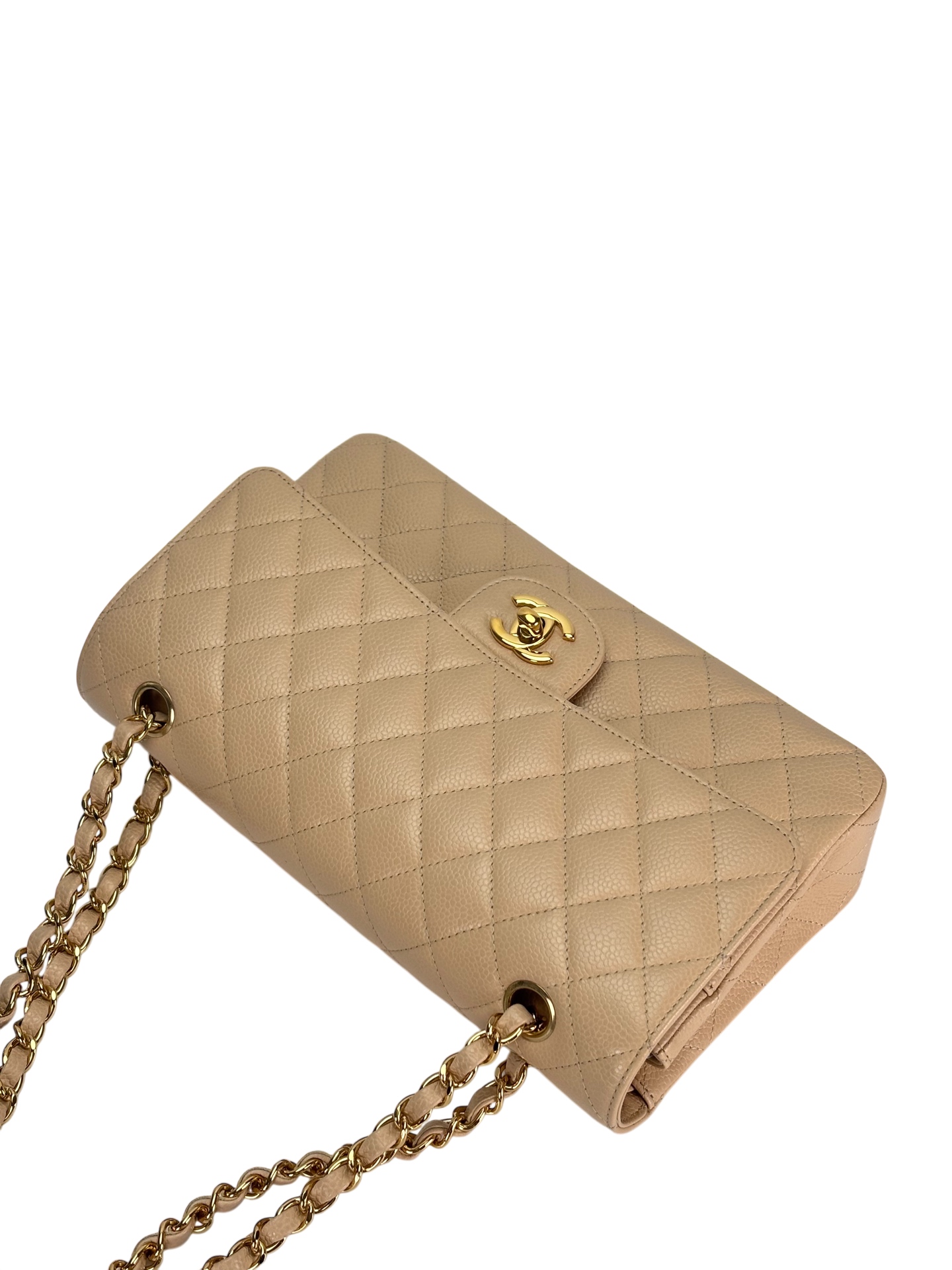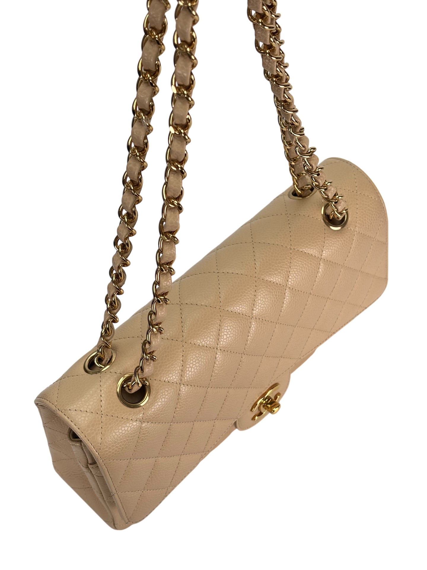 CHANEL – Medium Classic Double Flap Bag Beige Caviar Gold Hardware (CF25)