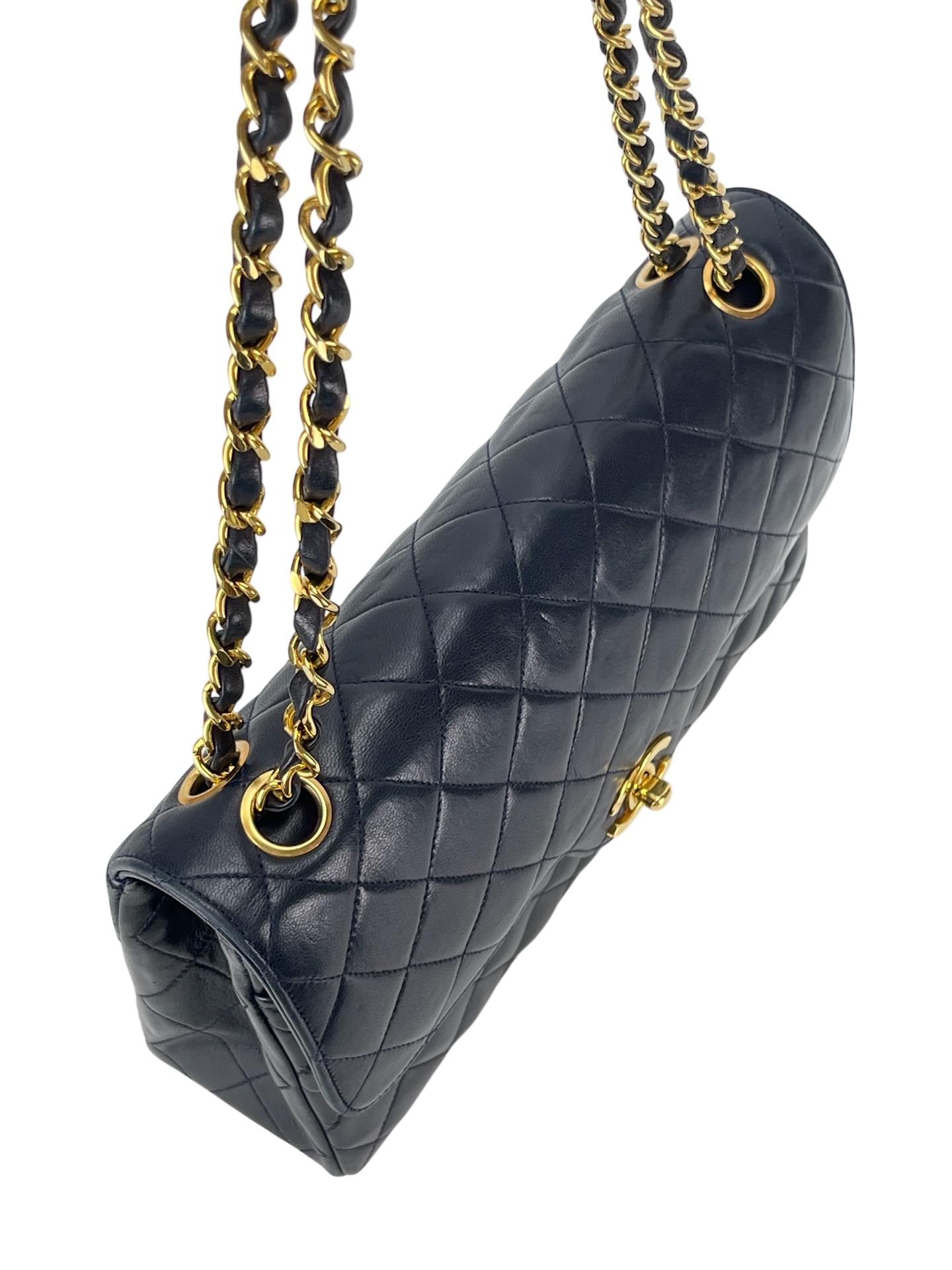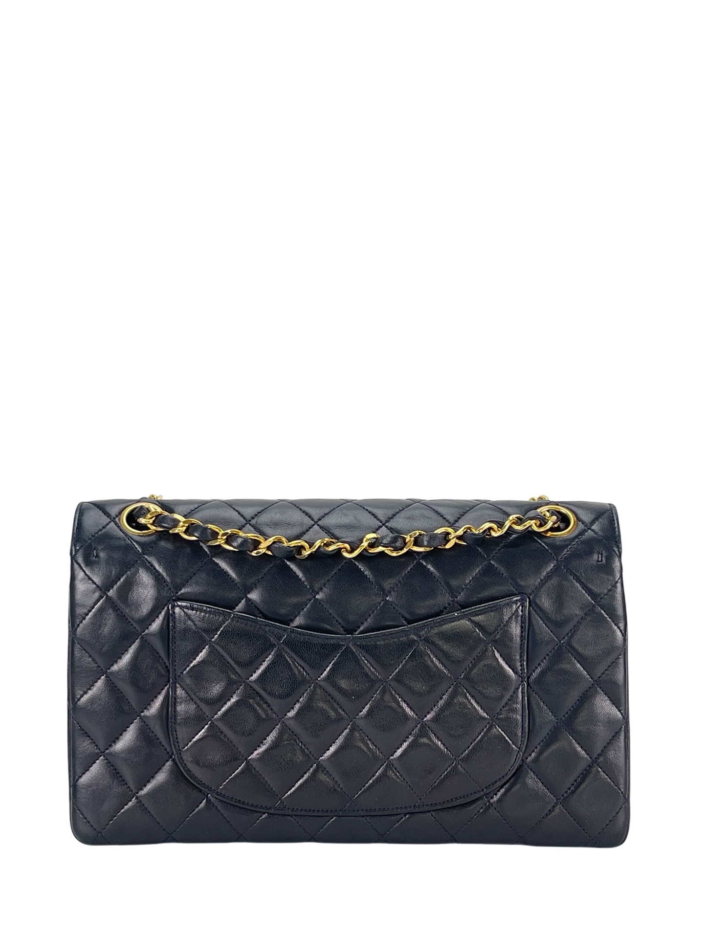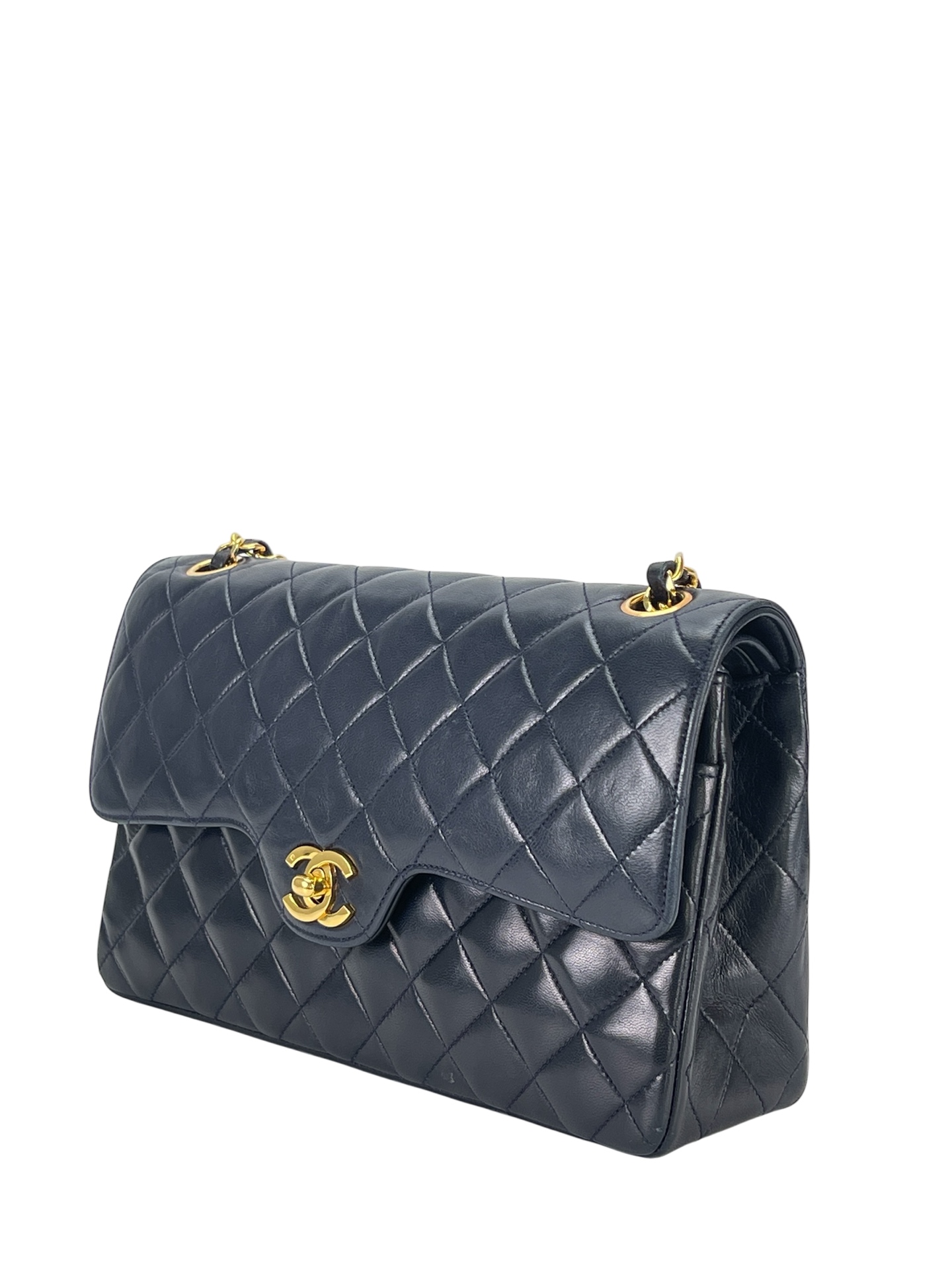 CHANEL – Navy Lambskin Matelasse Double Flap Chain Shoulder Bag