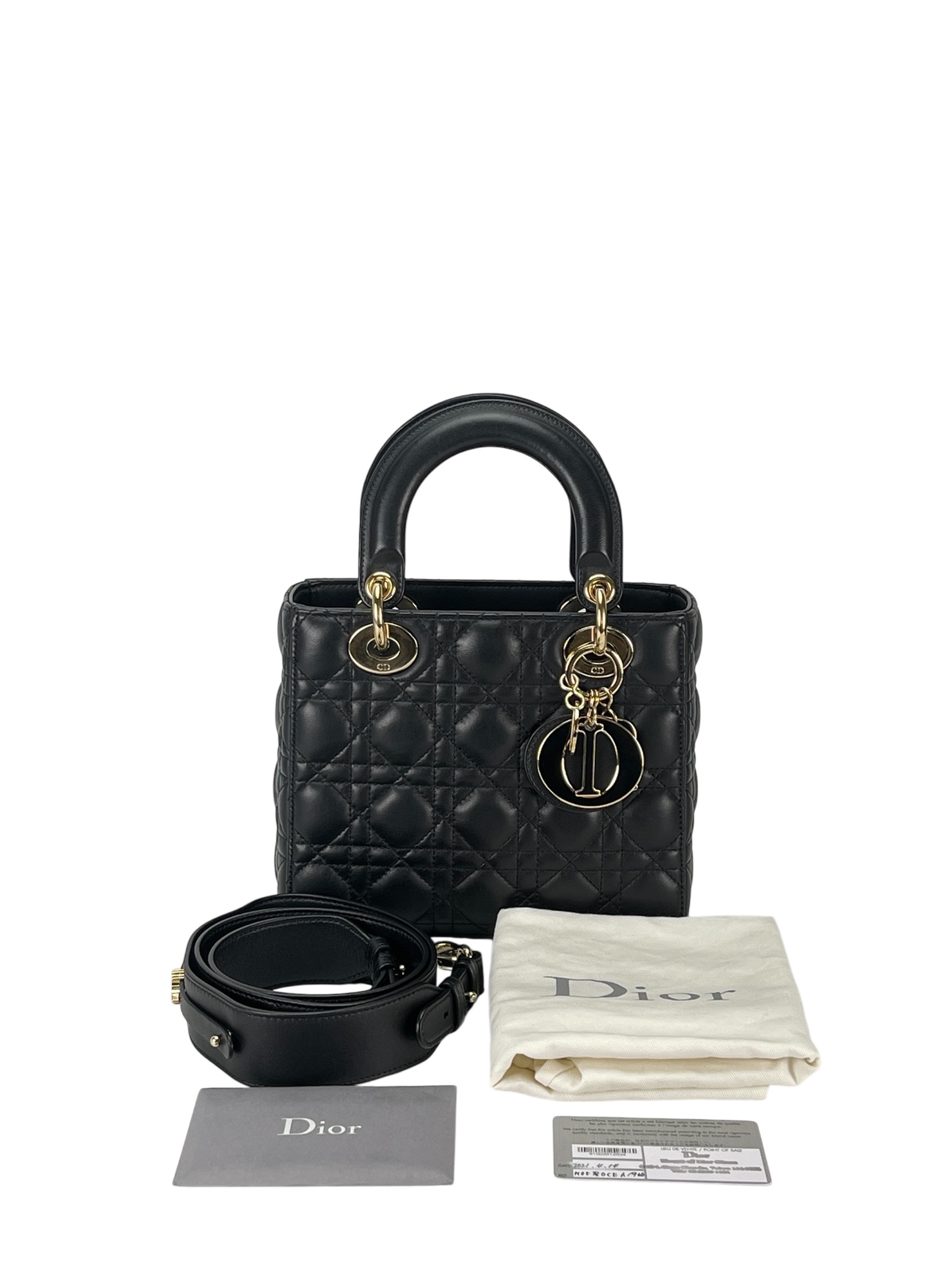 CHRISTIAN DIOR – Lady Dior 2Way Hand Bag Gold Hardware
