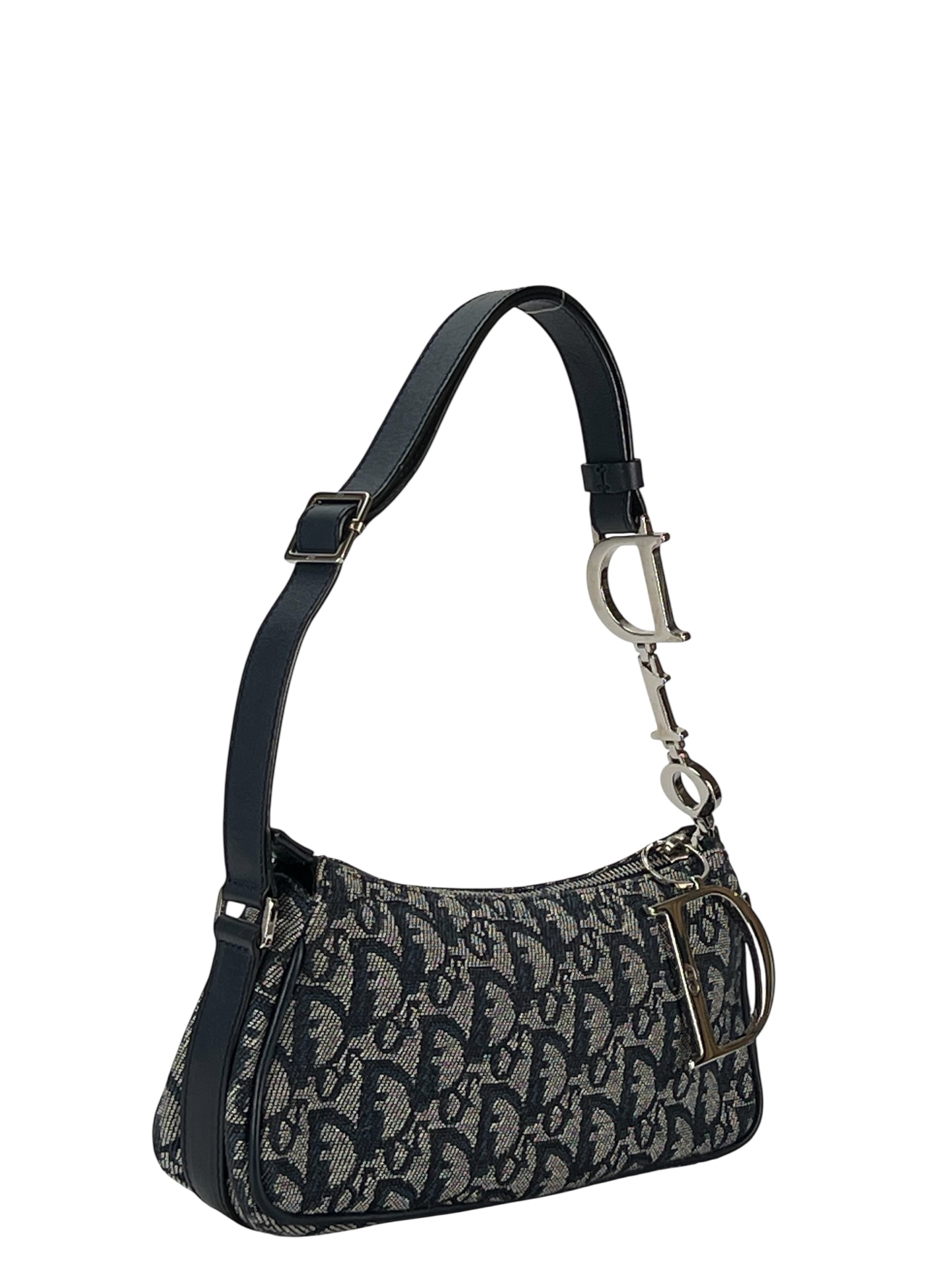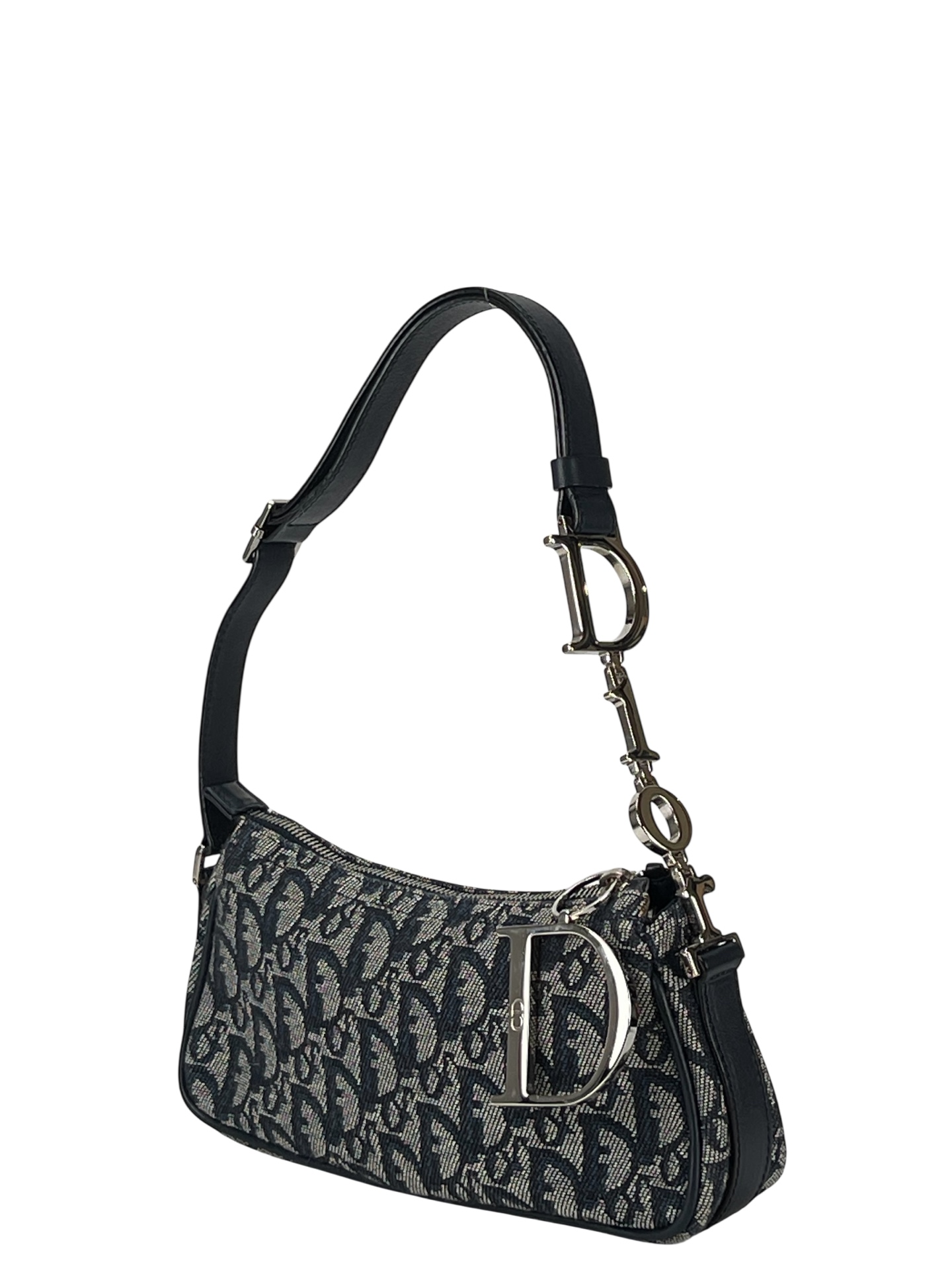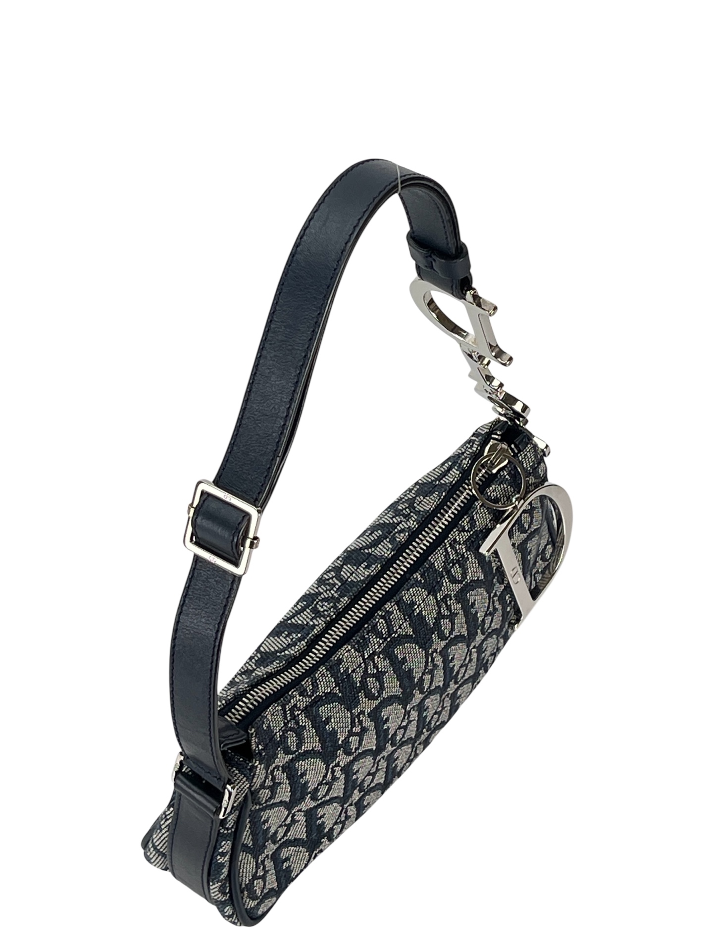 CHRISTIAN DIOR – Navy Canvas Trotter Saddle Handbag