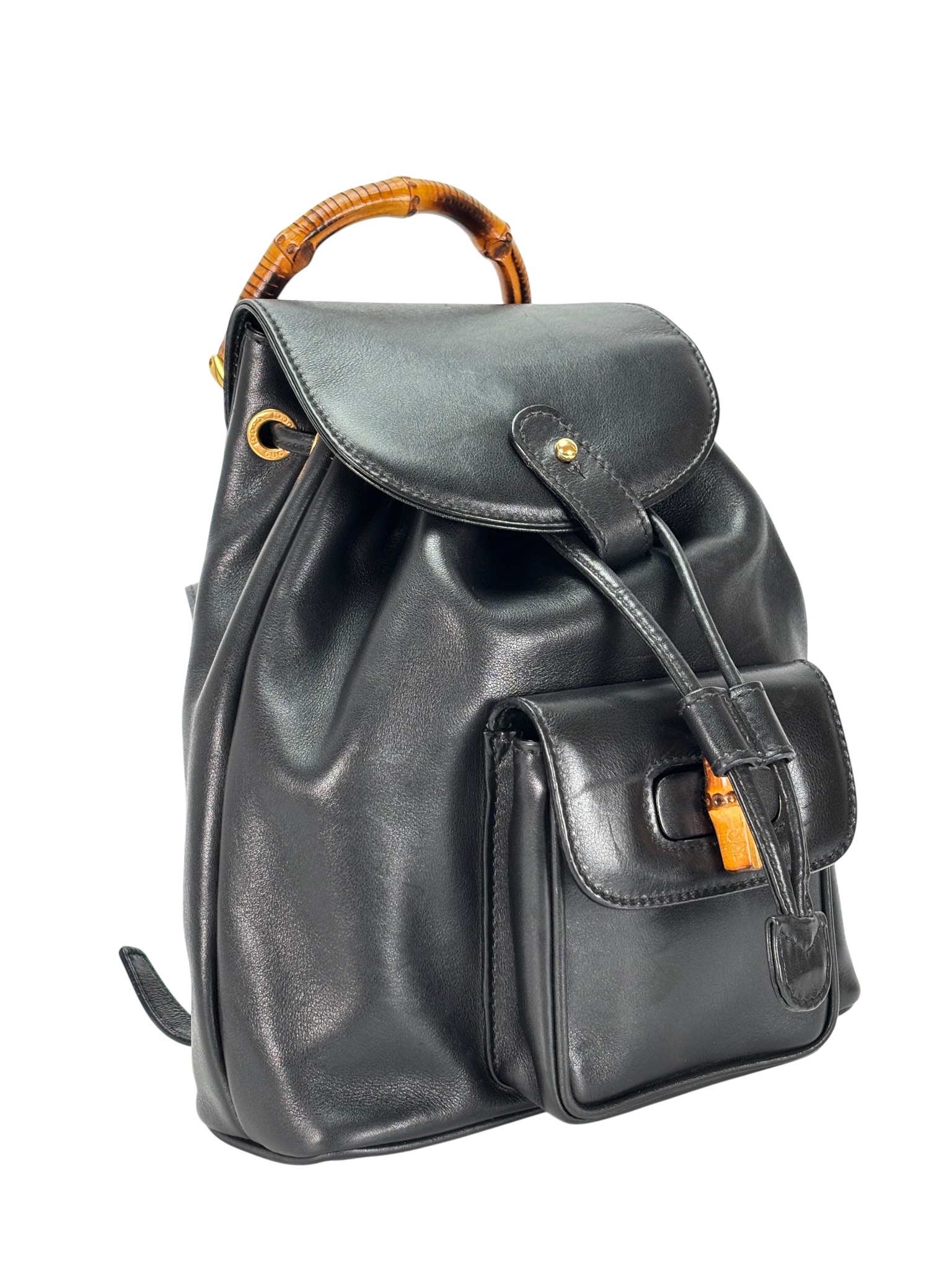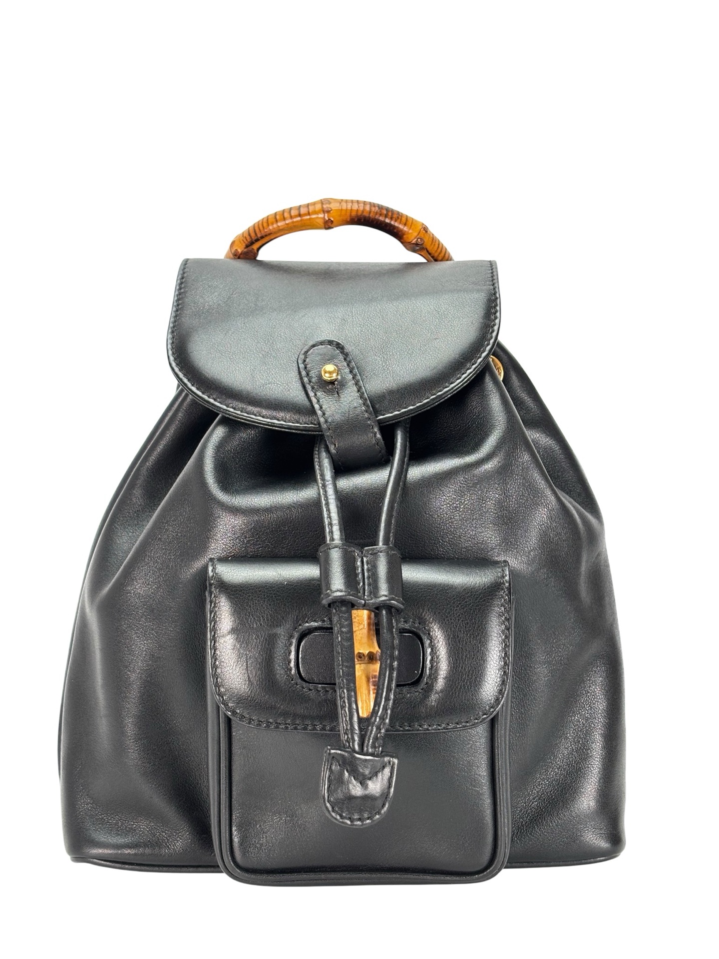 GUCCI – Vintage Black Leather Bamboo Backpack