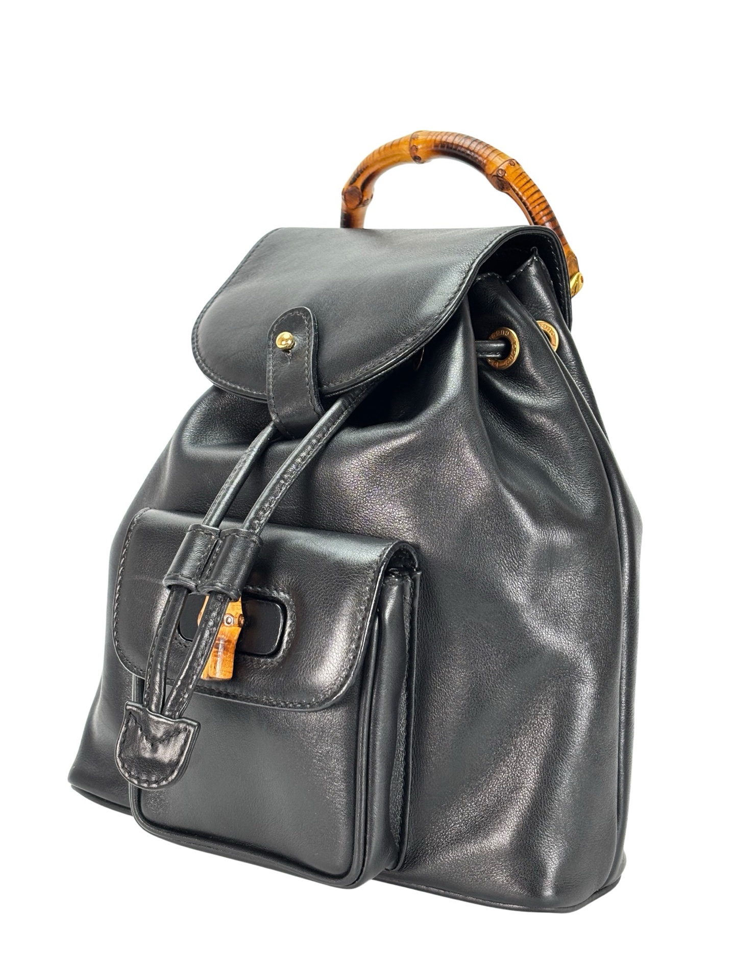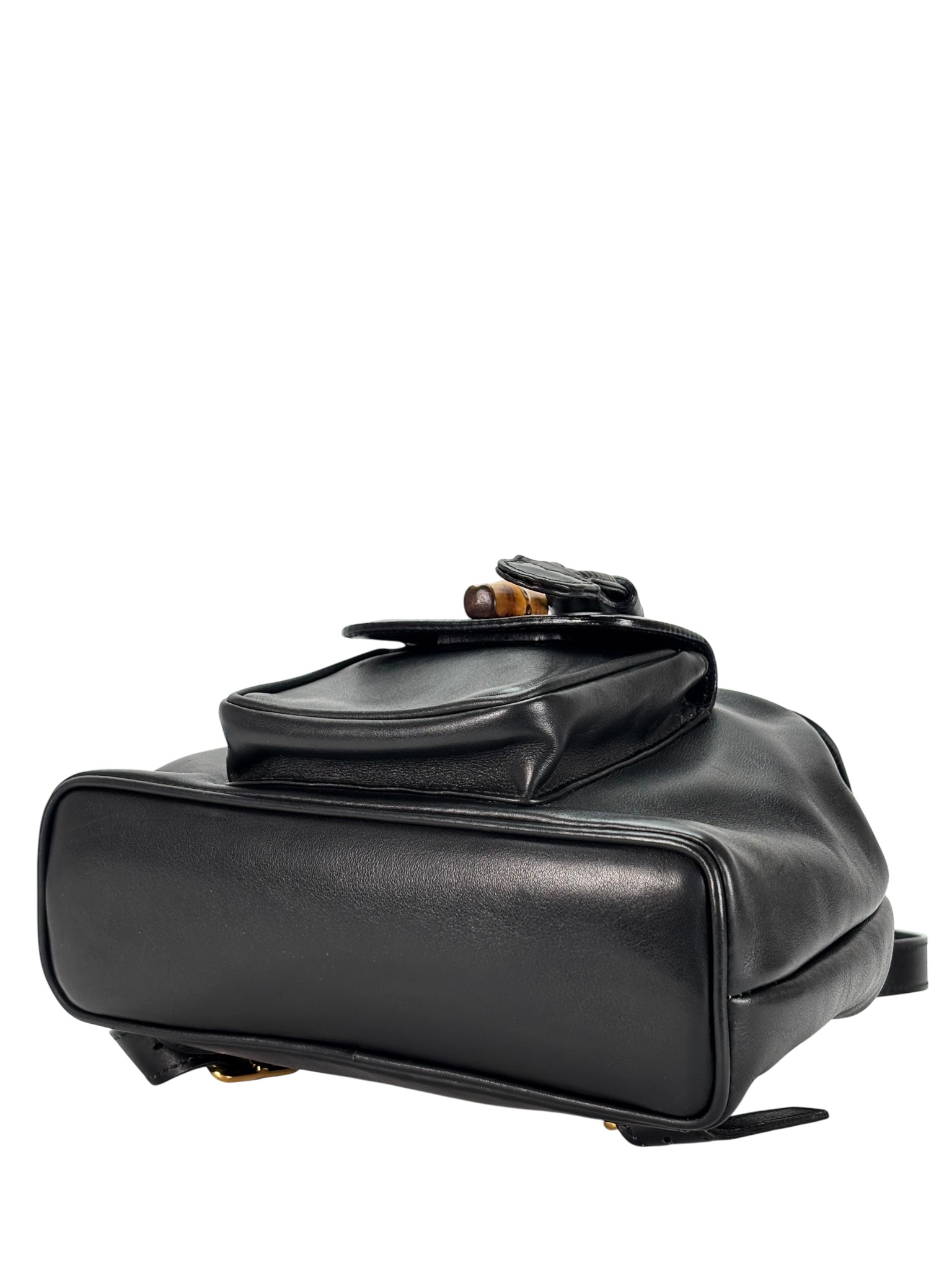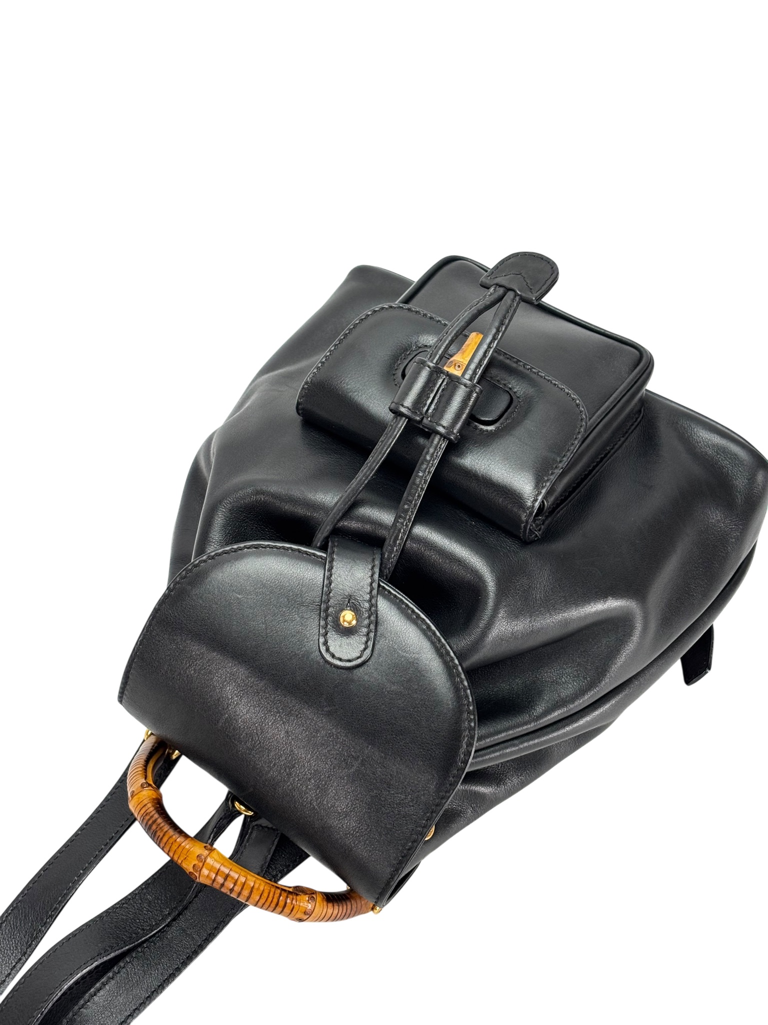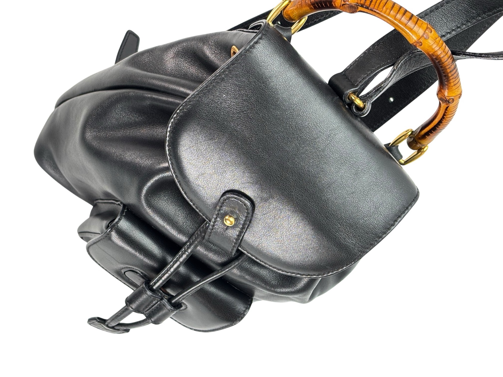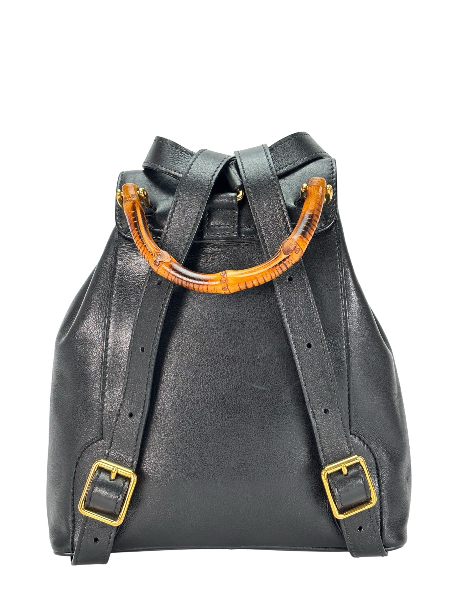 GUCCI - Vintage Black Leather Bamboo BackpackGUCCI – Vintage Black Leather Bamboo Backpack