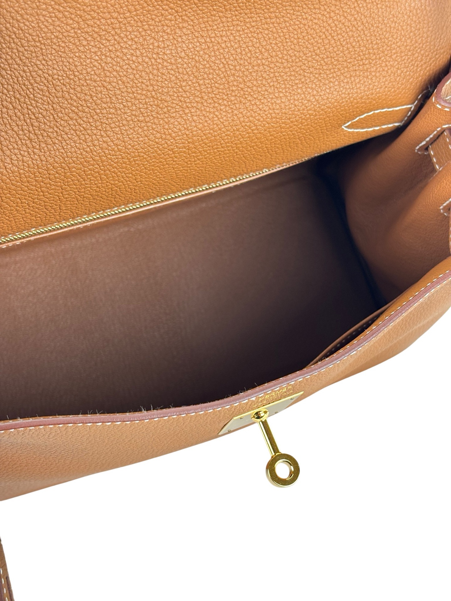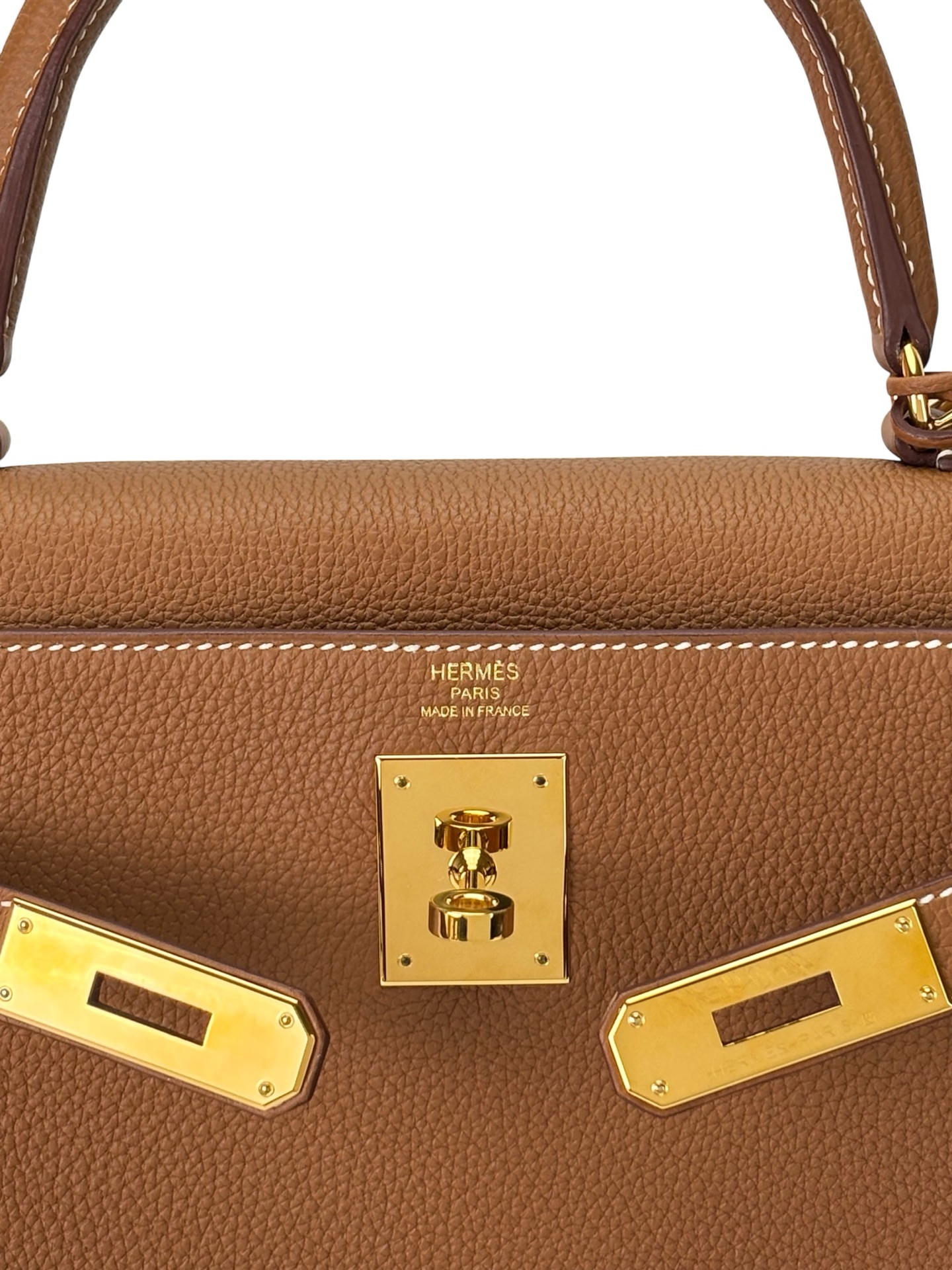 HERMES – Kelly 28 Gold Togo 2way Shoulder Bag Gold Hardware