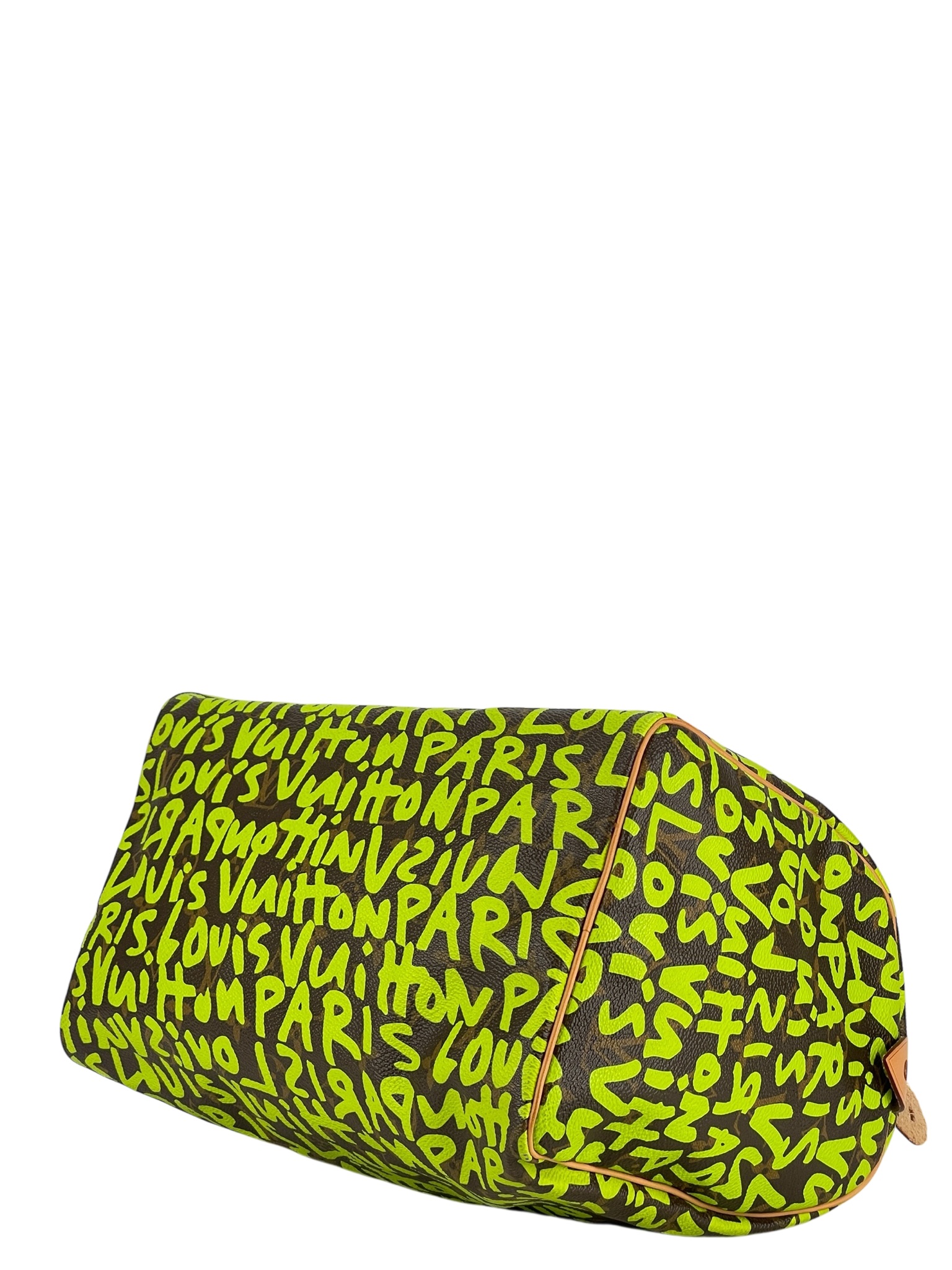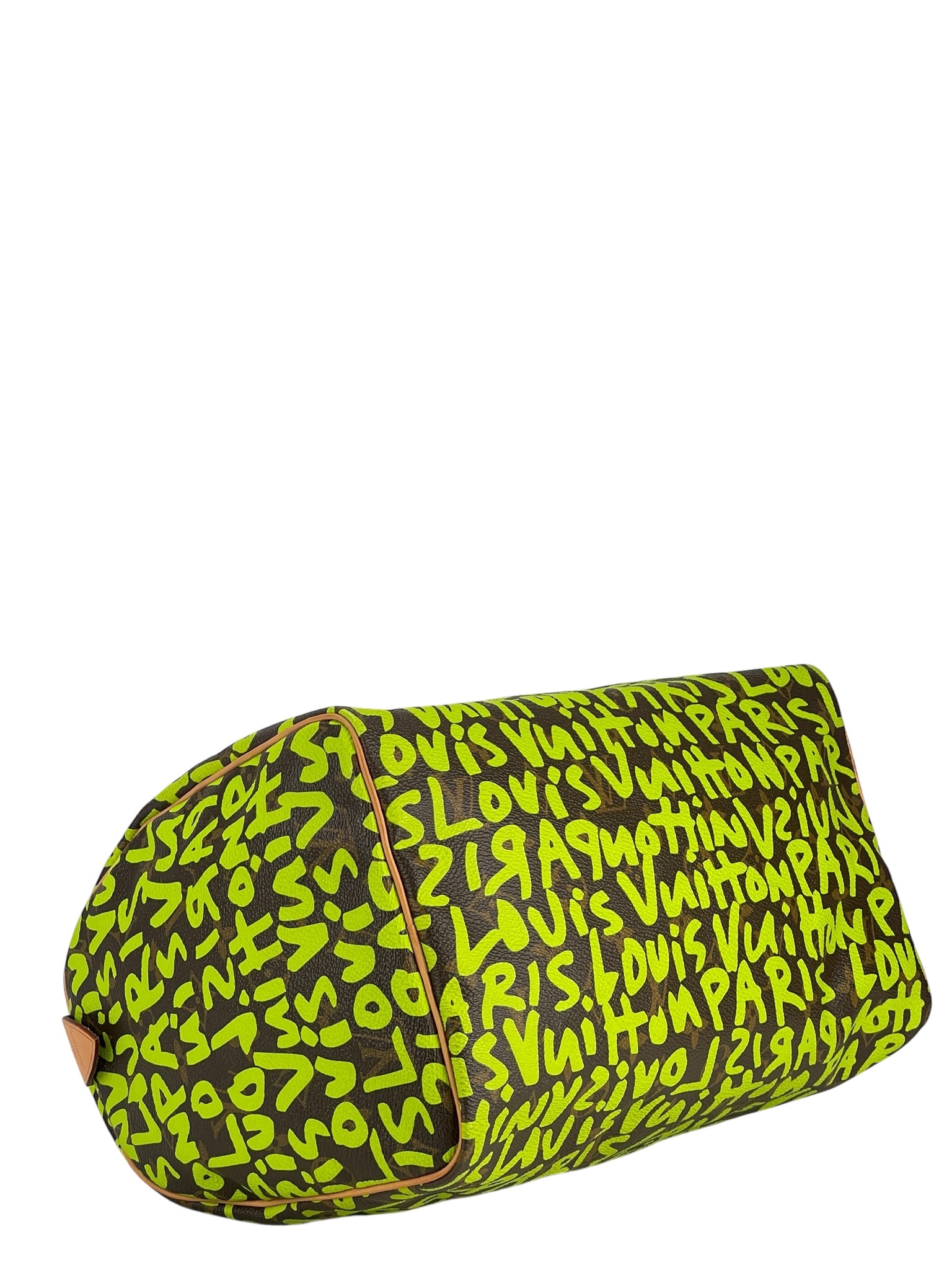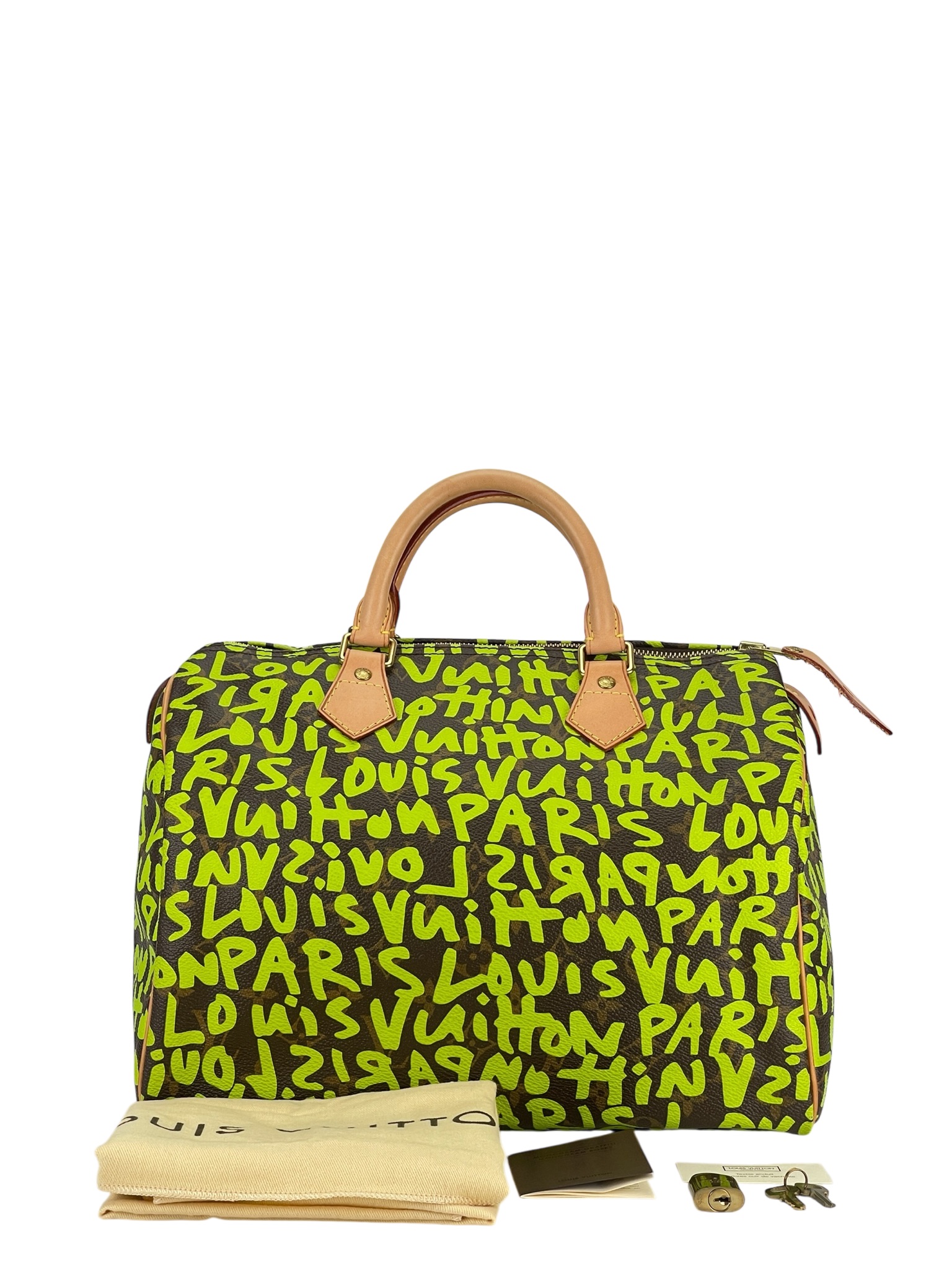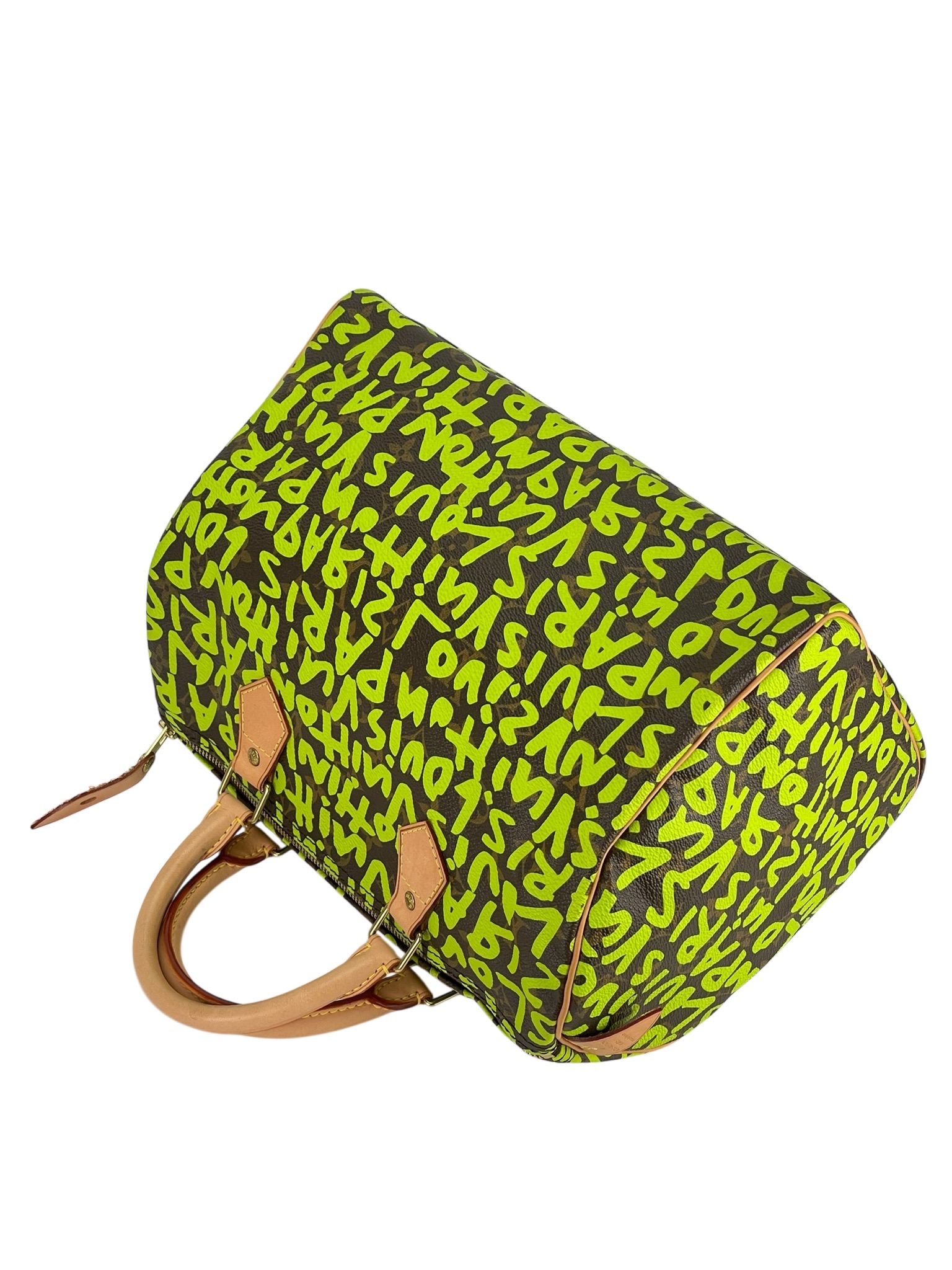 LOUIS VUITTON – Speedy 35 Green Graffiti Handbag Monogram Canvas