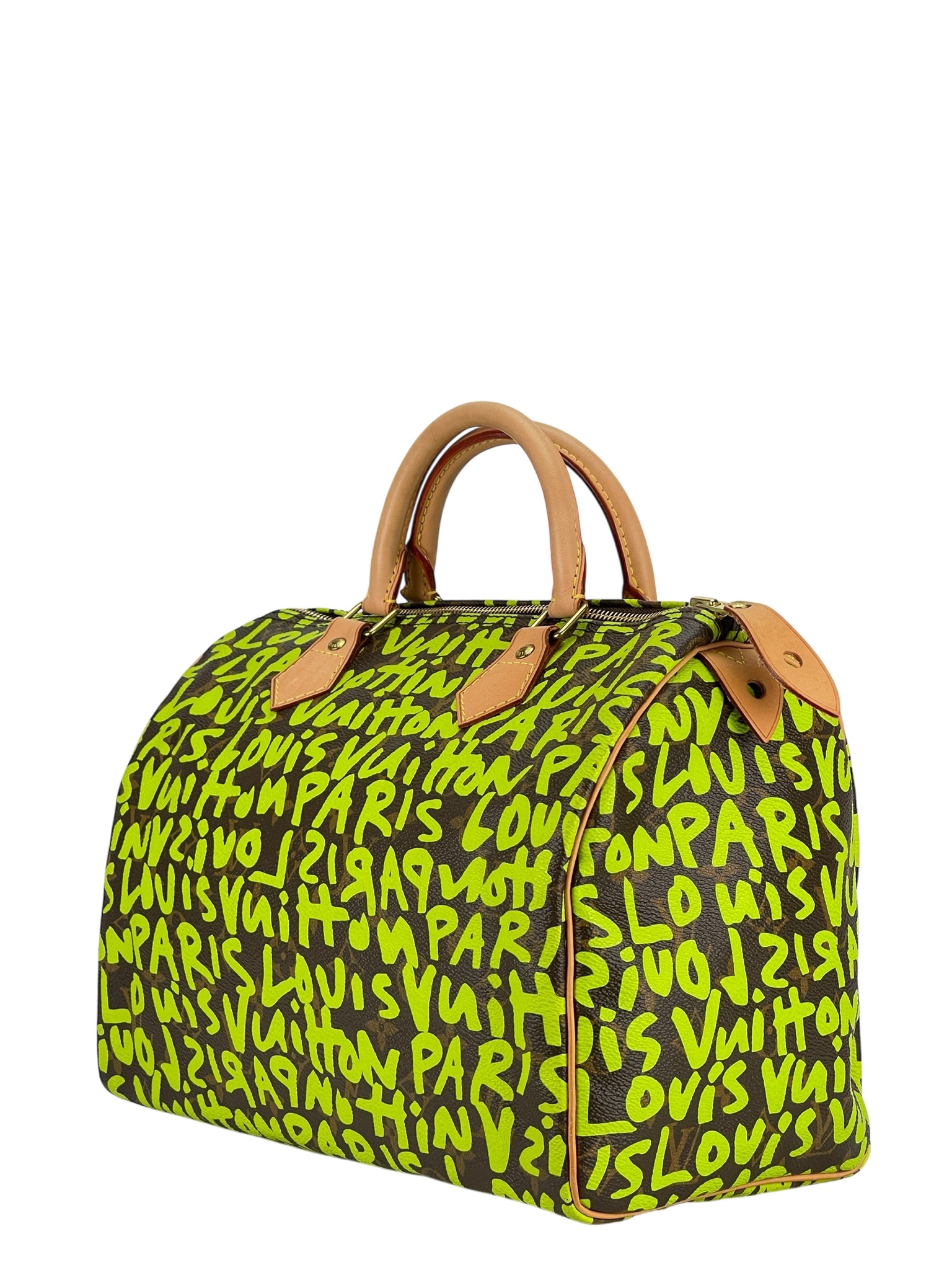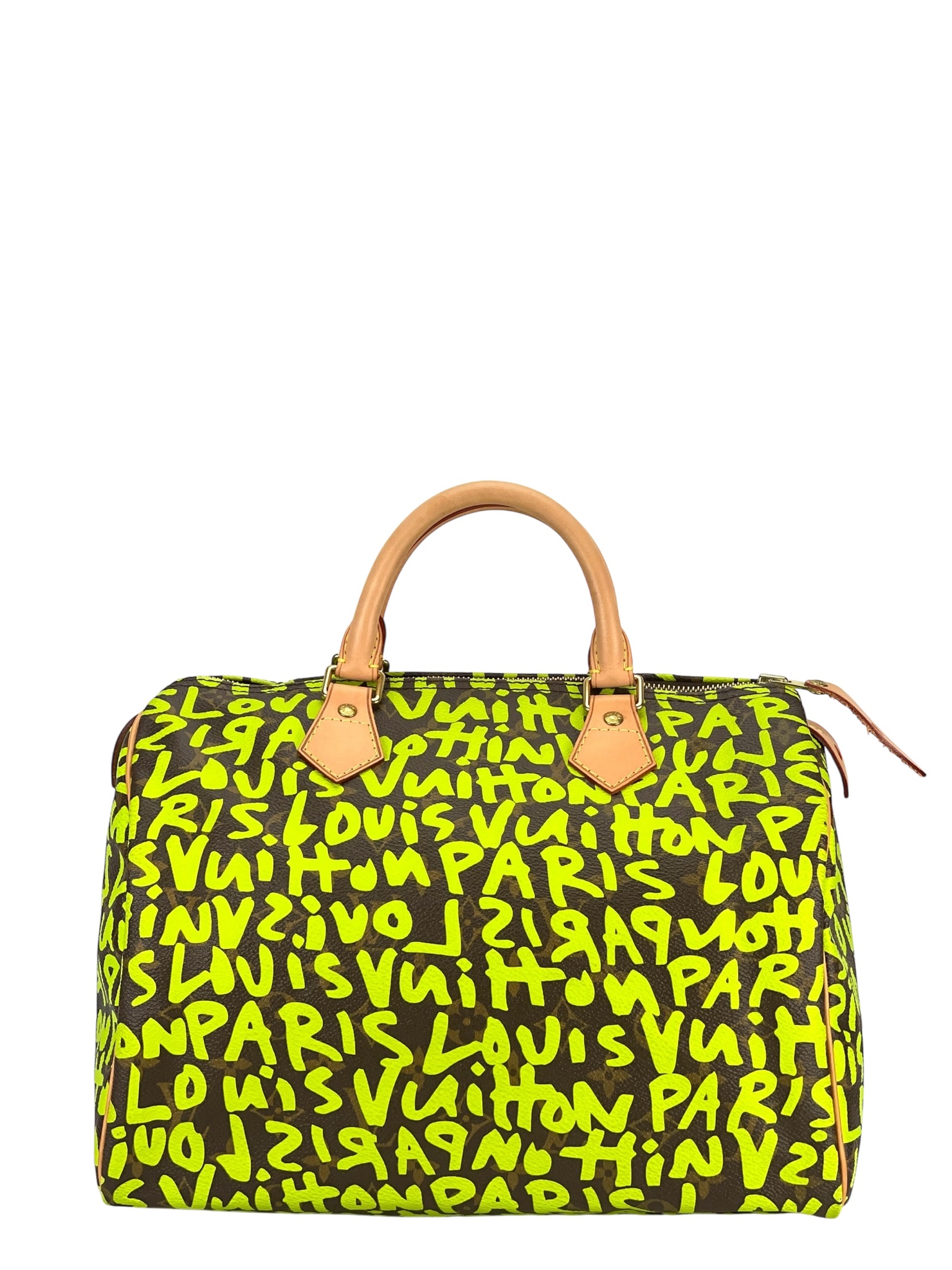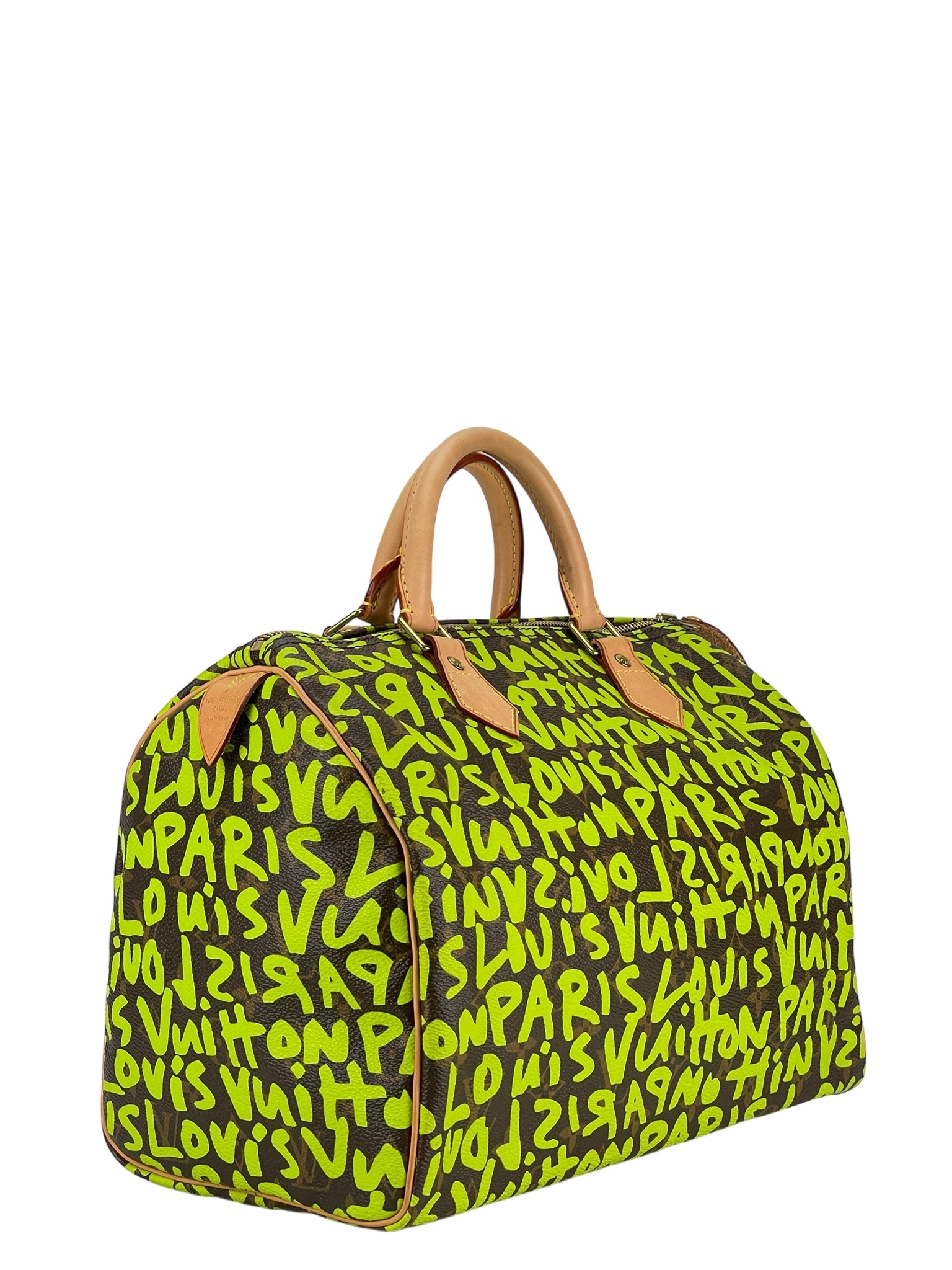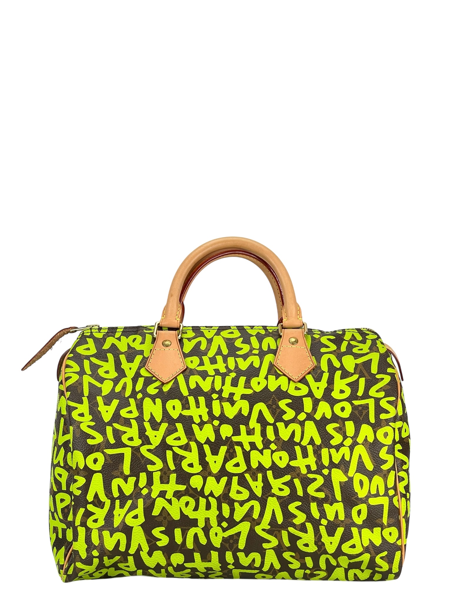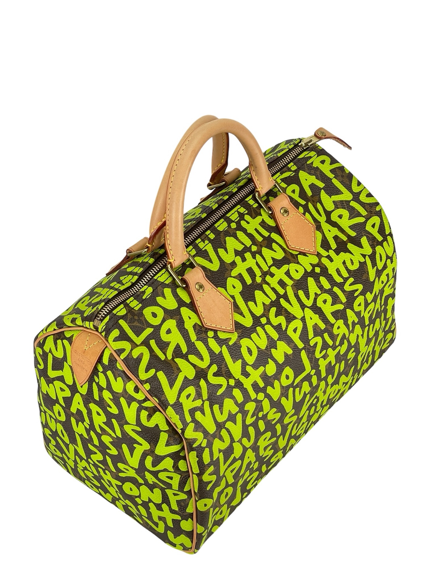 LOUIS VUITTON – Speedy 35 Green Graffiti Handbag Monogram Canvas